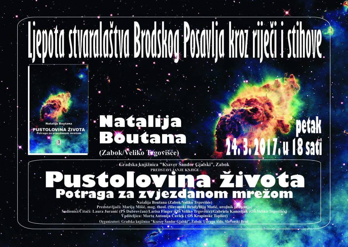 Dana 24.3.2017. u Gradskoj knjižnici "K.Š. Đalski" Zabok održana je promocija knjige Pustolovina života-Potraga za zvjezdanom mrežom, znanstveno fantastični roman s elementima bajke i pustolovine.