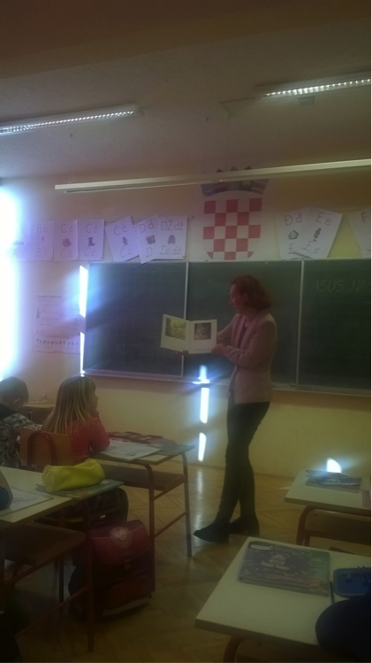 Stoga smo u petak, 16. veljače, u Osnovnoj školi Veliko Trgovišće osigurali učenicima razredne nastave njihovu „dnevnu dozu“ čitanja naglas: ravnateljica Diana Duk-Petek, defektologinja Elizabeta Končić Trlek i knjižničarka Vlatka Habulin su svakome razredu pročitale priču, ukazavši im pritom na važnost čitanja. Prvi razred je slušao priču Stefana Gemmela „Bila jednom…“; drugi razred priču „Zaljubljeni žabac“ Maxa Velthuijsa, a četvrti razred priču Mladena Kopjara „Kako sam postao brat“.