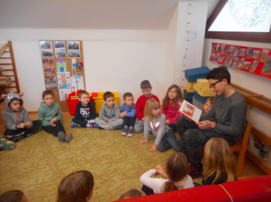 "Ono što je hrana za tijelo, to su bajke za dušu", napisao je Rudolf Steiner, pa izrazito hladno jutro u ponedjeljak, 26. veljače 2018. godine nije omelo članove Školske volonterske skupine: Leu Čuk (5. razred) i Tina Gvozdanovića (7.b ) te knjižničarku Vlatku Habulin u posjetu Dječjem vrtiću Rožica, kako bi polaznicima vrtića pročitali nekoliko bajki.