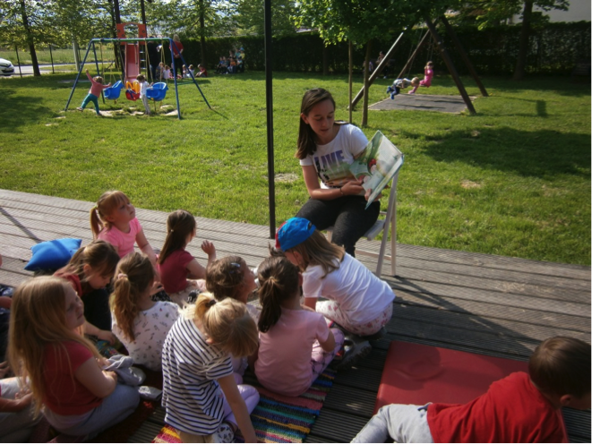 U ponedjeljak, 23. travnja, naši volonteri Lea Lang, Petra Marec i Tin Gvozdanović u u pratnji knjižničarke su u Dječjem vrtiću Rožica čitali polaznicima vrtića u sklopu manifestacije Matineja Noći knjige. Naslov tog programa bio je Bubamare u Rožici a održan je u vrtu Dv Rožica. Volonteri su djeci pročitali tri slikovnice: „Bubamara Lara među brojevima“, „Što je bubamara čula ovaj put?“ te slikovnicu „Nezadovoljna bubamara“. Uz zakusku, igre i druženje u vrtu djeca su crtala bubamare te oslikavala kamenčiće i broševe u obliku bubamara.