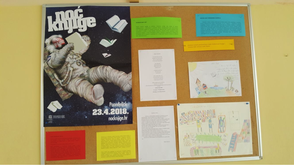 U našoj je školi sredinom mjeseca ožujka raspisan natječaj za učeničke literarne i likovne radove na temu „Budućnost knjige i čitanja“ unutar kojeg su učenici mogli predstaviti svoja viđenja knjiga, knjižnica i knjižničara budućnosti. U ponedjeljak, 23. travnja, izloženi su najuspješniji učenički radovi u školi u Velikom Trgovišću, u područnoj školi Strmec i područnoj školi Dubrovčan.