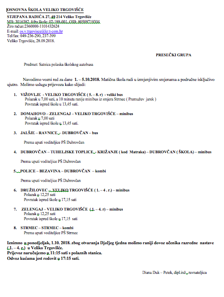Prijevoz od 1.10.-5.10. 2018