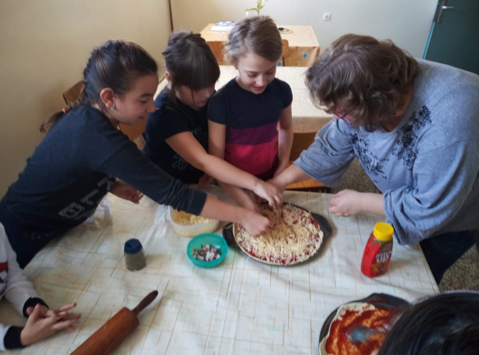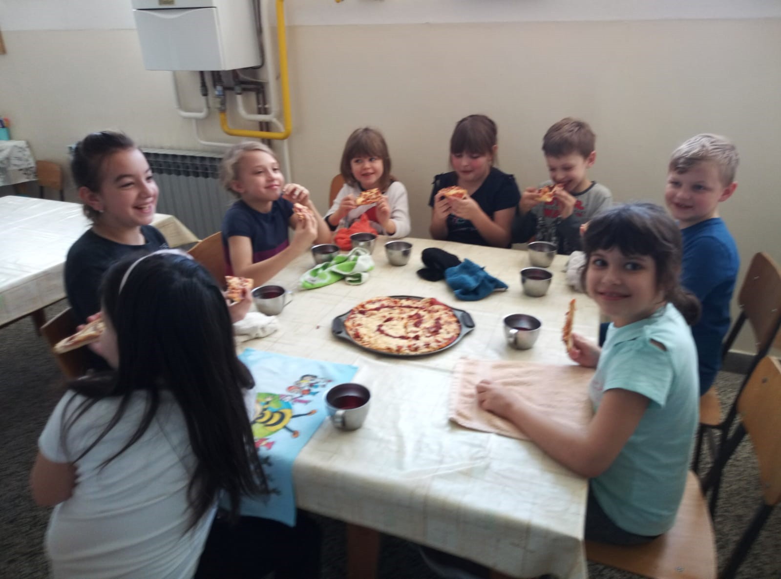 Tijekom vremena koje je bilo potrebno da se pita i pizze ispeku, učenicima je pročitana priča Vitez Opseg i kružni zmaj u kojoj je na djeci razumljiv način objašnjeno značenje i važnost broja pi. Nakon razgovora o zanimljivostima vezanim za broj pi posvetili smo se omiljenim i slasnim kružnim oblicima, u slanoj i slatkoj varijanti.