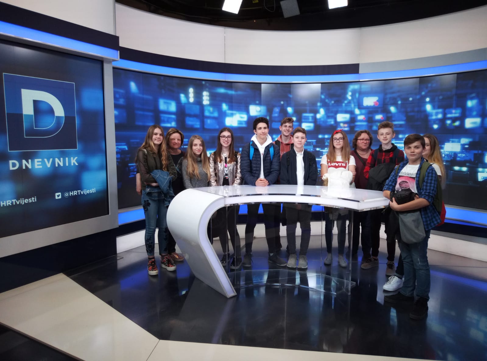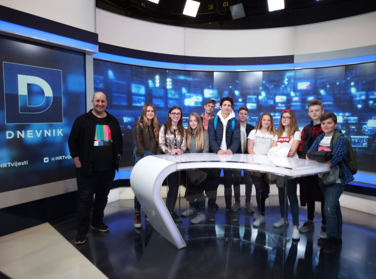 Po dolasku na Prisavlje 3 dočekala nas je gospođa Kristinka Knežević Wozdecky ispred HRT Akademije. Gospođa Knežević provela nas je kroz prostorije Hrvatske radiotelevizije gdje smo imali prilike vidjeti scenografiju i kostimografiju koja se koristi u emisijama HRT-a, te smo saznali brojne zanimljive informacije o Hrvatskoj radioteleviziji.