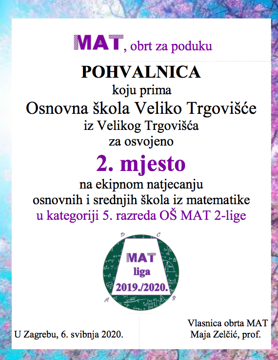Petaši drugi u Hrvatskoj u ekipnom matematičkom natjecanju