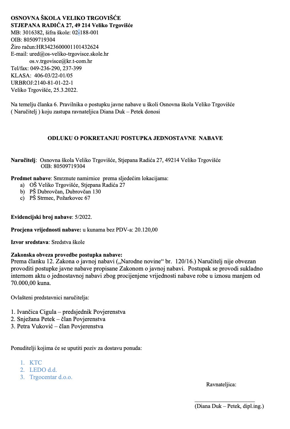 OŠ V. Trgovišće - NABAVA SMRZNUTIH NAMIRNICA