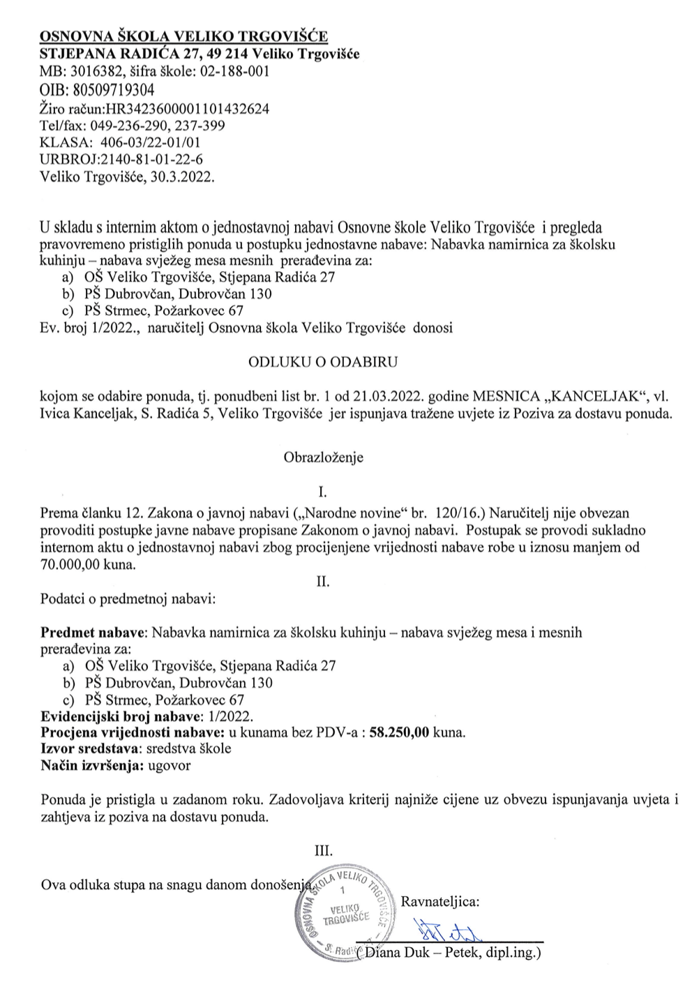 Odluka o odabiru ponude i Obavijest o odabiru najpovoljnijeg ponuditelja