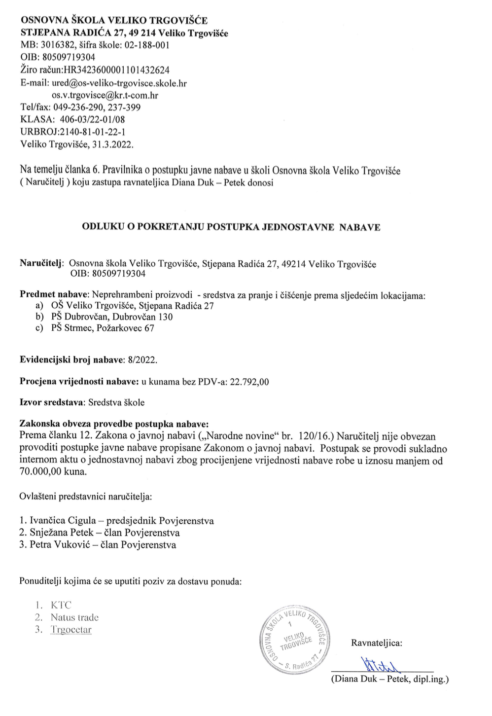 OŠ Veliko Trgovišće - nabava neprehrambenih