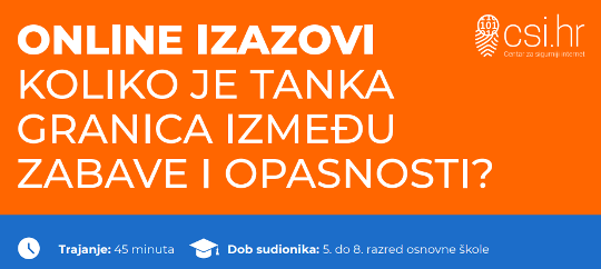 Vjerujem da ste svi čuli za pojam online izazovi. Sudjelovanje u bilo kakvim izazovima, kao i međusobno natjecanje koje isti omogućavaju, kod djece i mladih oduvijek je izazivalo veliko zanimanje. Društvene mreže, ali i Internet općenito, ovakvim aktivnostima danas pridodaju dodatnu pažnju. Iako izazovi koji se postavljaju putem društvenih mreža mogu biti prezentirani u dobrotvorne i/ili edukativne svrhe, u posljednje se vrijeme susrećemo i s onim izazovima koji su usmjereni na rizična i opasna ponašanja djece i mladih. Neki su od takvih izazova, nažalost, rezultirali i tragičnim posljedicama.
