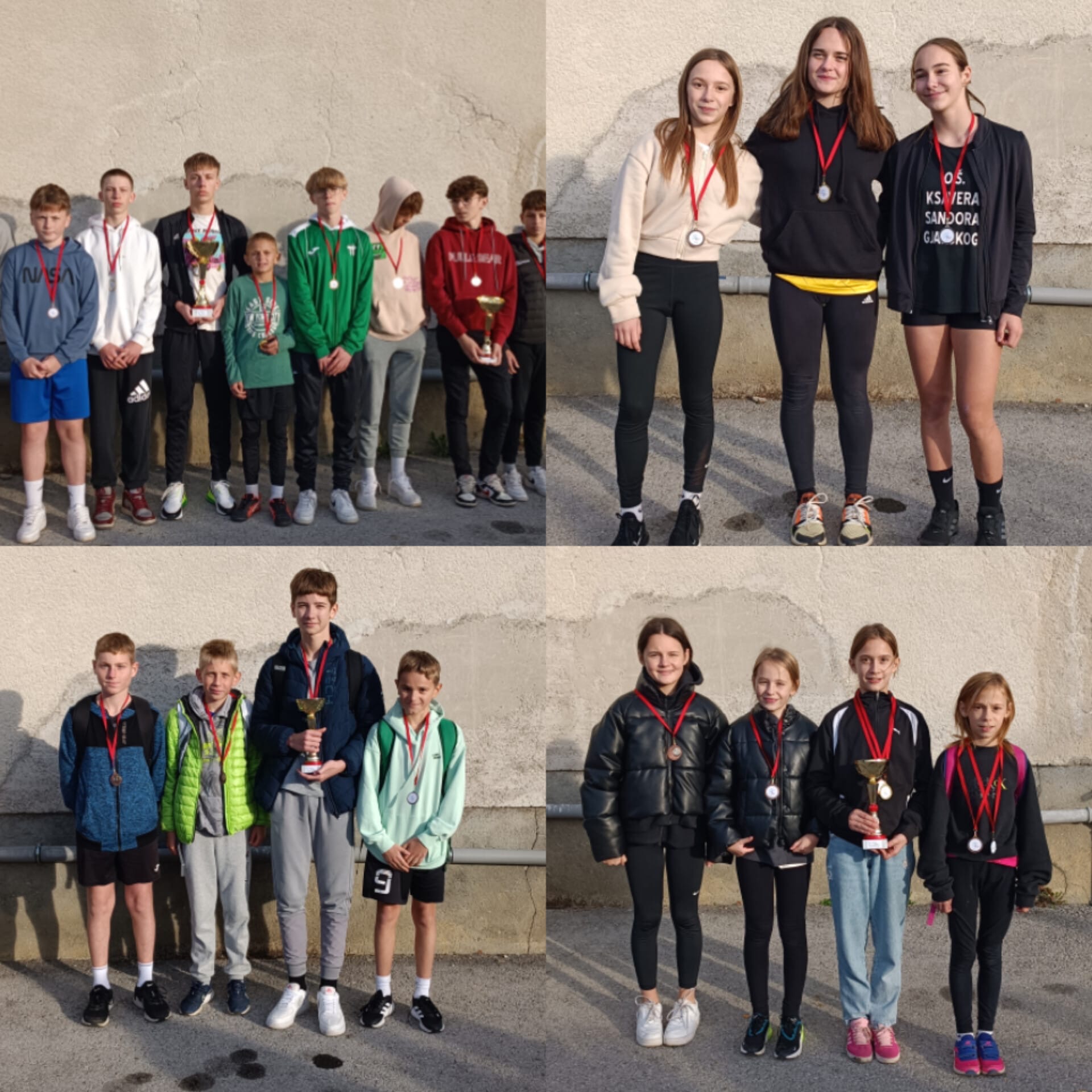 Na kraju dolazimo do županijskih prvaka, učenika sedmih i osmih razreda koji su nastupali u sastavu: Marcel Tišljar, Mateo Pleško, Nikola Herceg i Jan Jurički. Ovo je ekipa podjednakih trkača koji su na treninzima i testiranjima pokazali da su pretendenti za postolje, a na utrci su to potvrdili i predstavljat će Krapinsko – zagorsku županije na Državnom natjecanju u krosu. U ovoj utrci nismo imali pojedinačnih medalja, ali su dječaci pokazali koliko je bitan timski rad te su trčali kao ekipa što im je donijelo prvo mjesto.