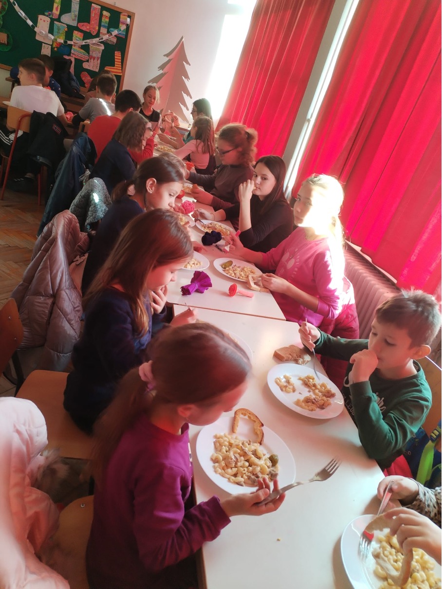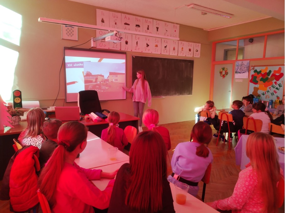 Nakon druženja i upoznavanja predstavnici Vijeća učenika prošli su kroz školu i upoznali su se s našim djelatnicima, a i prostorijama koje imamo. Nakon obilaska škole, učenici od 5. do 8. razreda priključili su se redovnoj nastavi te su imali priliku prisustvovati na Engleskom jeziku, Glazbenoj kulturi, TZK-u i Informatici, a učenici od 1. do 4. razreda imali su božićnu radionicu, izradu tradicionalnih ukrasa za bor.