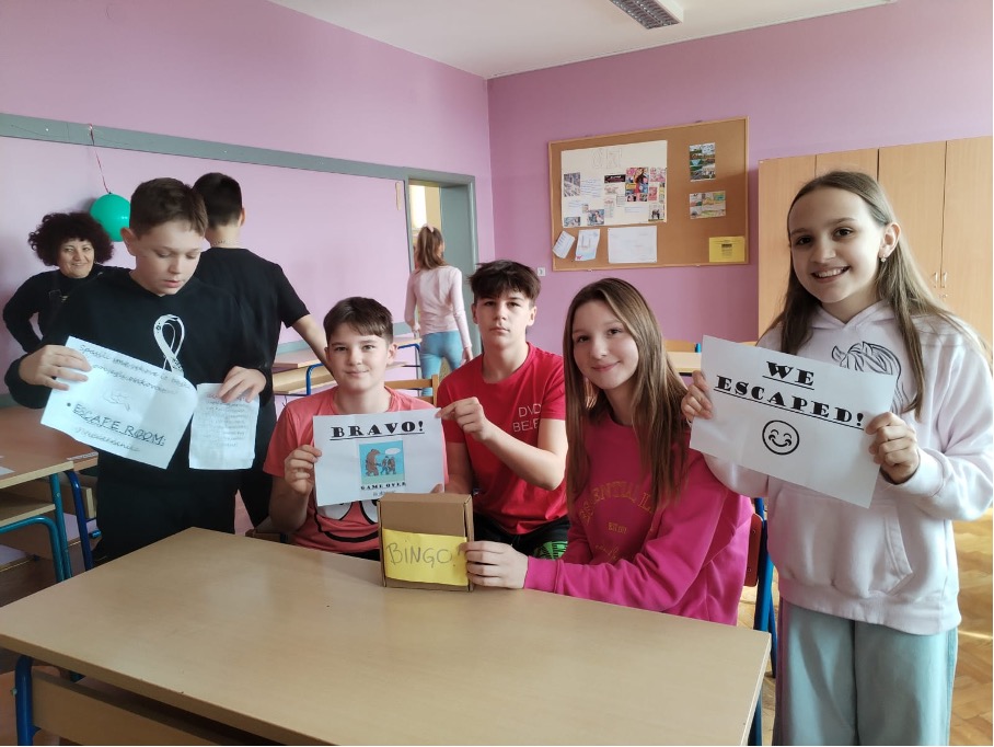 Nakon aktivnosti obilježavanja Dana ružičastih majici učenici od 1. do 4. razreda priključili su se redovnoj nastavi dok su učenici predmetne nastave ostali na radionici koja je predviđena za njih. Aktivnost koja je bila pripremljena za njih je ESCAPE ROOM.