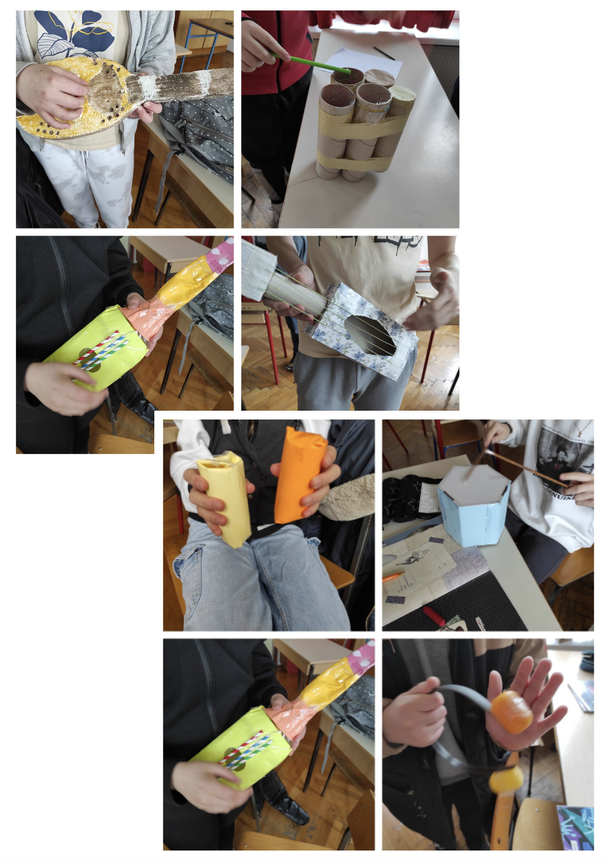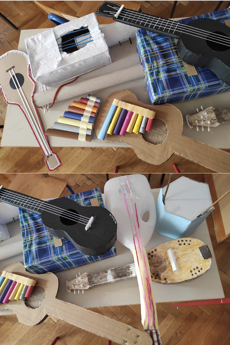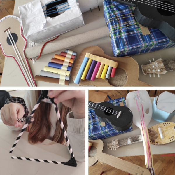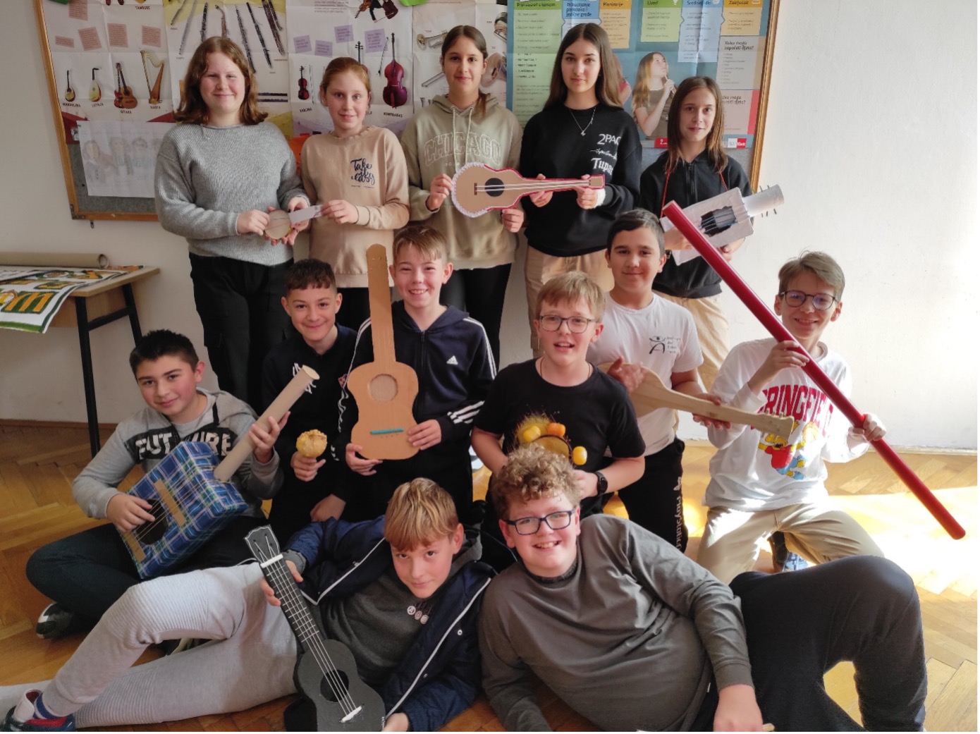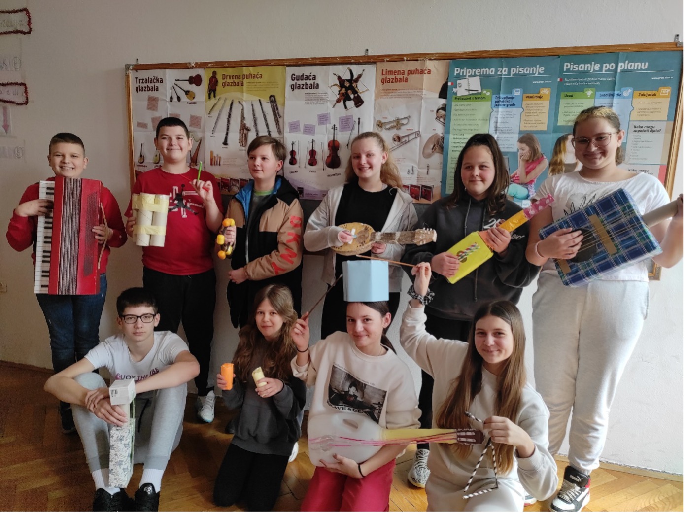 U sklopu eTwinning projekta „Glazba i priroda“ učenici 6.razreda su izrađivali i svirali na nstrumentima koje su sami izradili iz recikliranih ili prirodnih materijala.