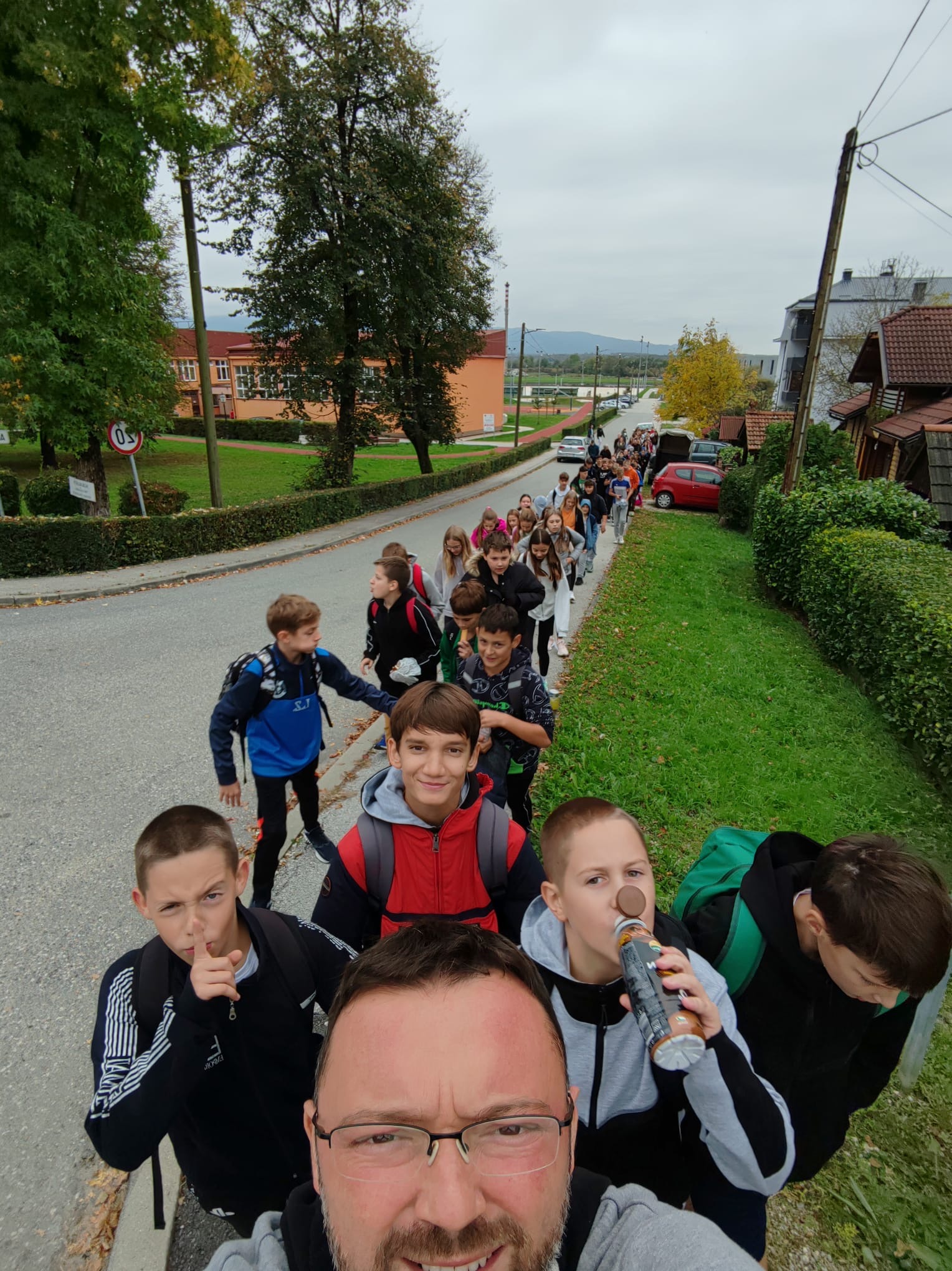 Učenici su normalnim hodom krenuli prema Strmcu u koloni po 2 učenika poštujući pravila ponašanja u prometu. Tempo nije bio previsok te su gotovo svi učenici uspijevali držati korak. Ukoliko je netko zaostajao, utoliko je skupina usporila i sačekala sve učenike da se priključe.