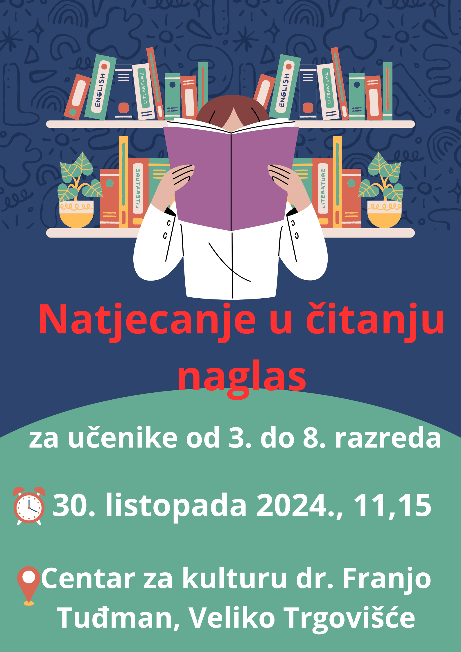 U srijedu, 30. listopada 2024. godine u Centru za kulturu d. Franjo Tuđman u Velikom Trgovišću održano je školsko natjecanje u čitanju naglas. U natjecanju je sudjelovao 31 učenik iz naše škole u dvije kategorije: