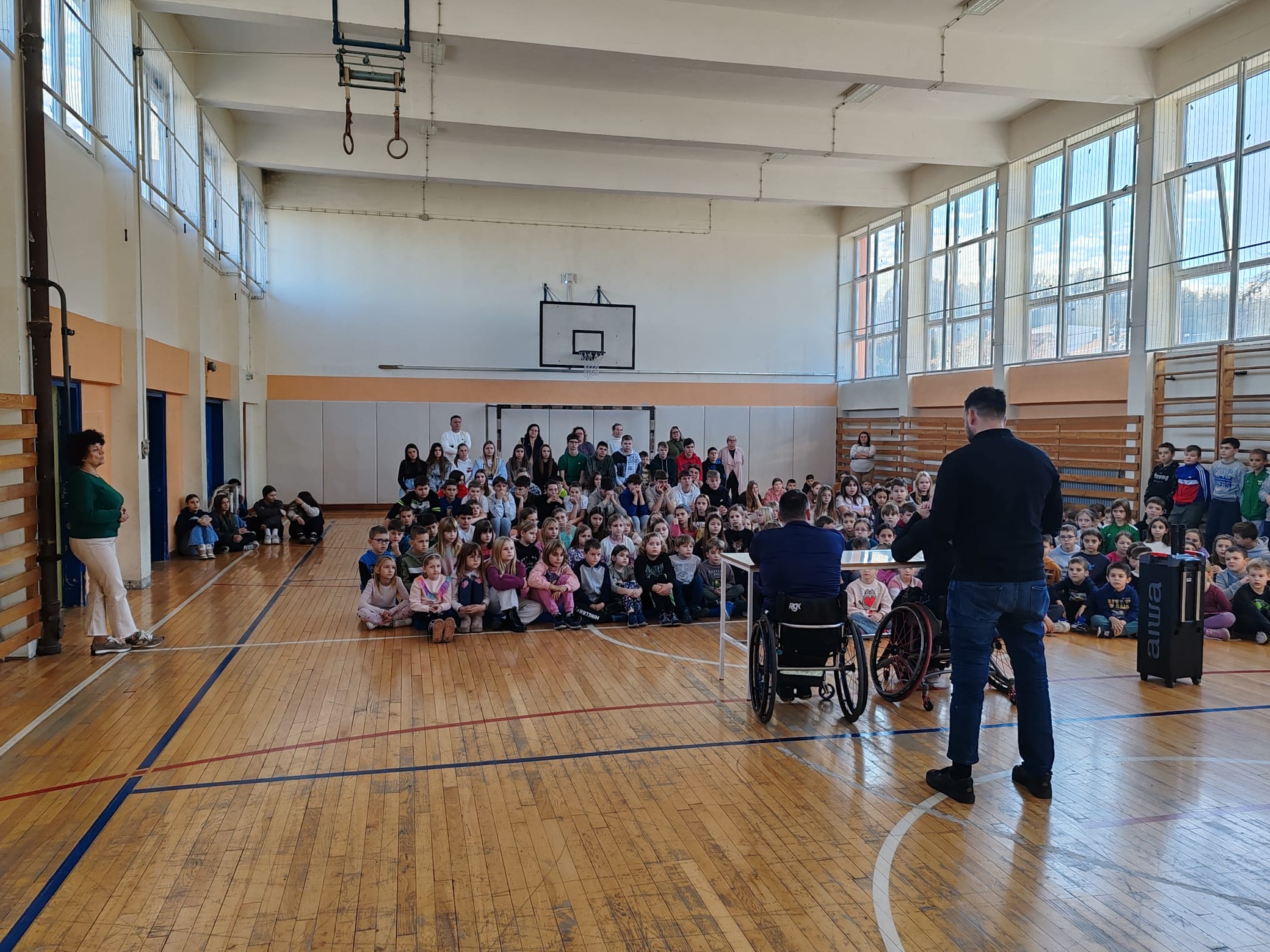 Pojedini su se učenici okušali u vožnji kolica te su pokušali zabiti koš, a na svojoj su se koži uvjerili kako nešto što izgleda jednostavno nije baš tako. Kapetan reprezentacije Ante Štimac demonstrirao je puno tehničkih elemenata koji su u njegovoj izvedbi djelovali vrlo jednostavno, a koševe je zabijao lakoćom. Učenici su se uključili svojim pitanjima kroz koja su si mogli približiti način života osoba s invaliditetom, a ta najiskrenija dječja pitanja stvarni su problemi naših predavača na koje su oni sa zadovoljstvom odgovarali.