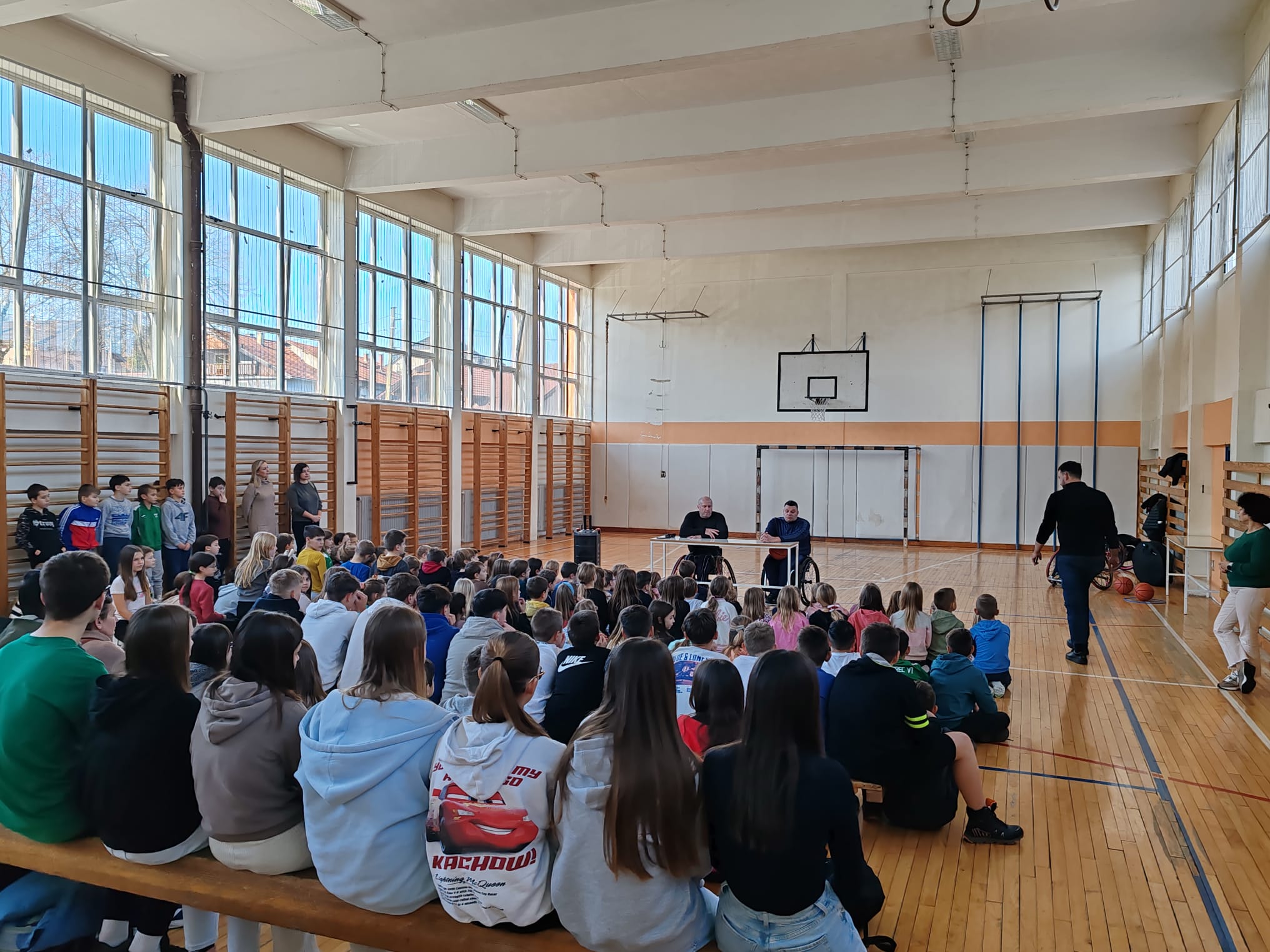 Pokazali su našim učenicima opremu i objasnili pravila košarke u kolicima. Također su učenicima ukazali na važnost ljudske ustrajnosti i borbenosti te neprihvaćanja odustajanja kao opcije za suočavanje sa svakodnevnim problemima. Svaki od njih ispričao je učenicima svoju životnu priču, a nakon izlaganja demonstrirali su košarku u kolicima te pokazali to nevjerojatno umijeće.