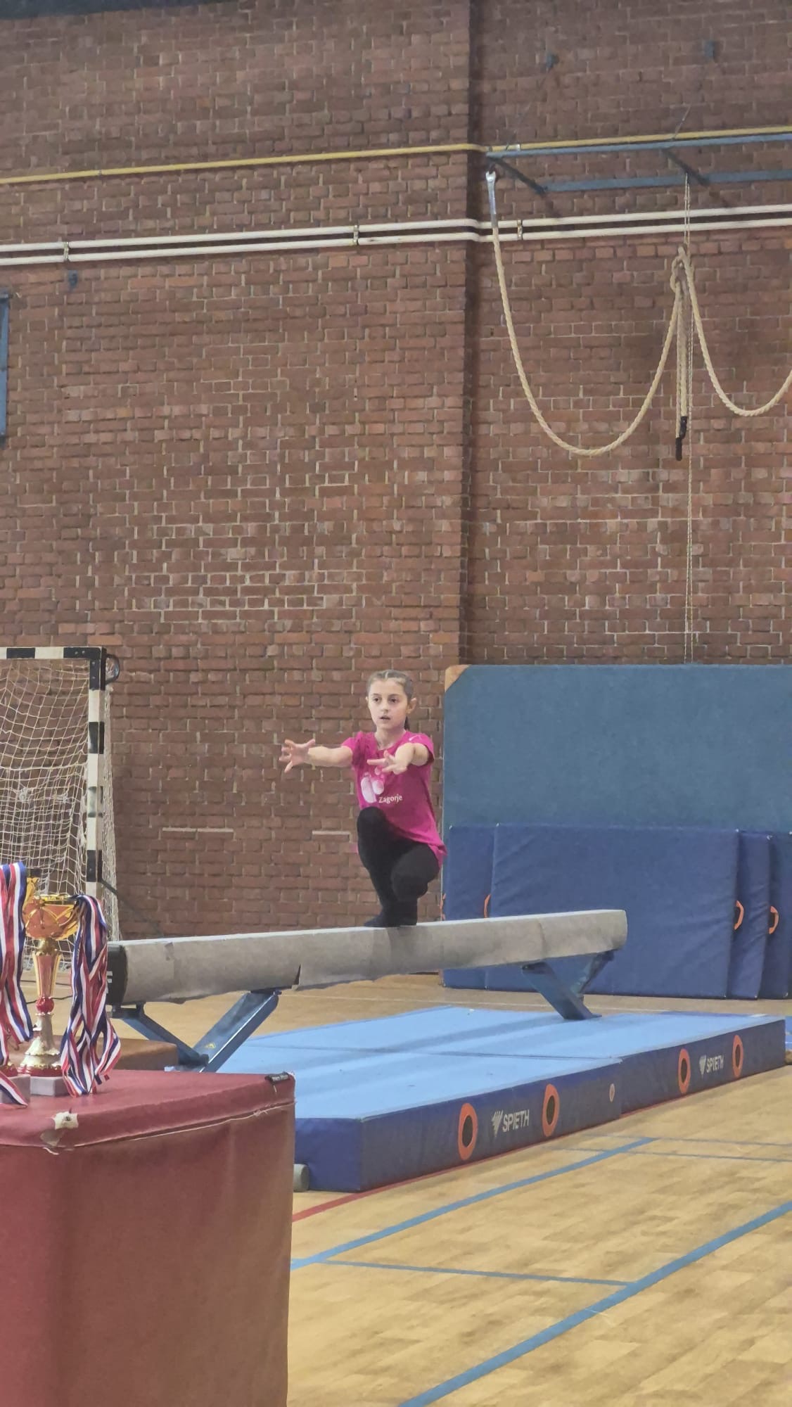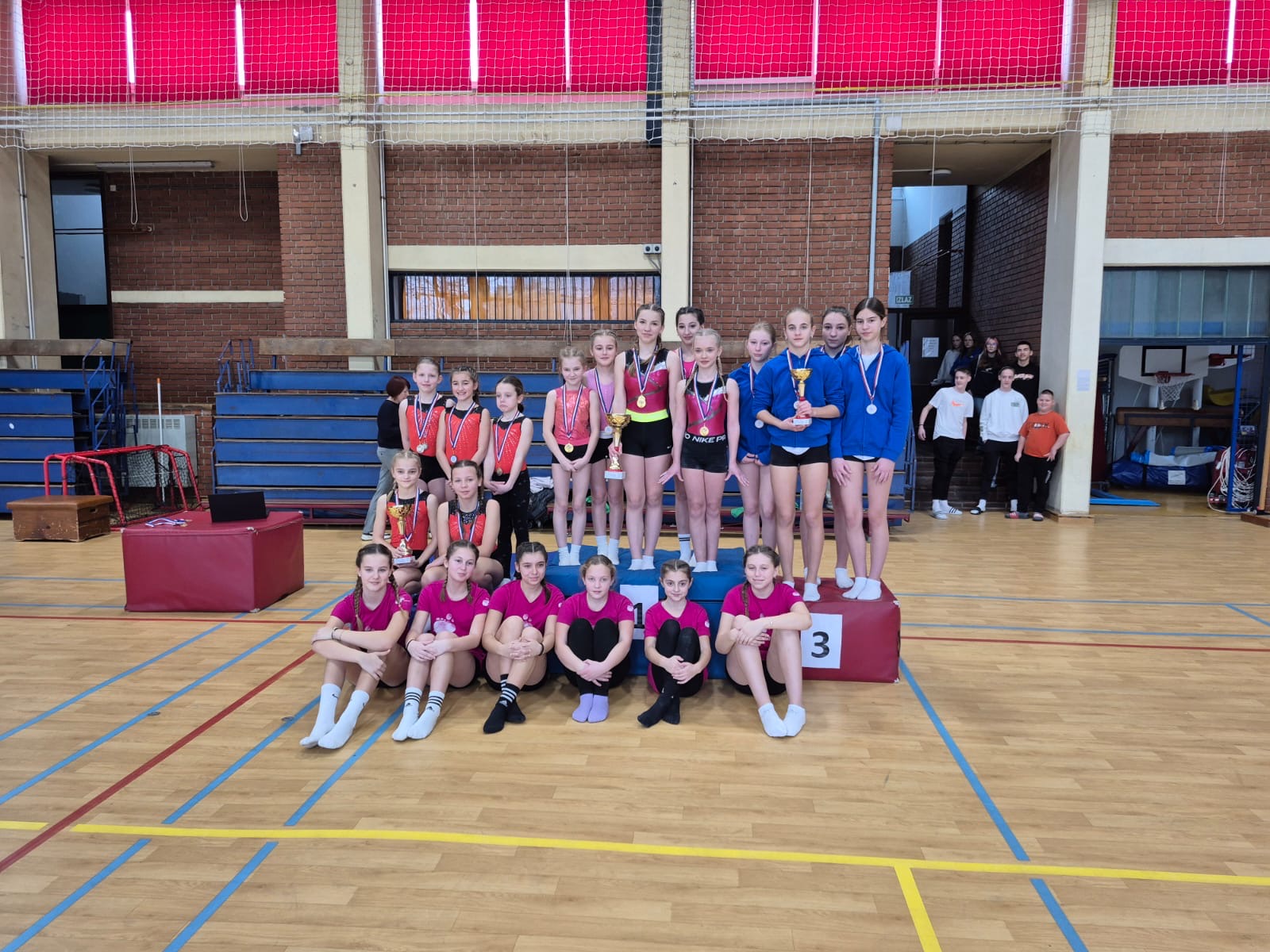 Naše su djevojke bile u grupi s OŠ Antuna Mihanovića iz Klanjca te su se prvo predstavljale na parteru, odnosno na tlu. Nakon toga pokazale su svoje vještine na gredi. Kad su odradile vježbu na gredi, prebacile su se do preskoka na kojemu su imale najbolje rezultate. Zadnja sprava na kojoj su se pokazale bile su ruče koje su uz puno truda i s ostatkom snage solidno odradile. Poslije kratke pauze za zbrajanje bodova došao je trenutak proglašenja. Uz napetost u zraku naše su djevojčice bile na 4.mjestu , ali kako bi rekao učitelj tjelesne i zdravstvene kulture: ,,Bitno da smo uspjeli napraviti vježbe bez problema.''