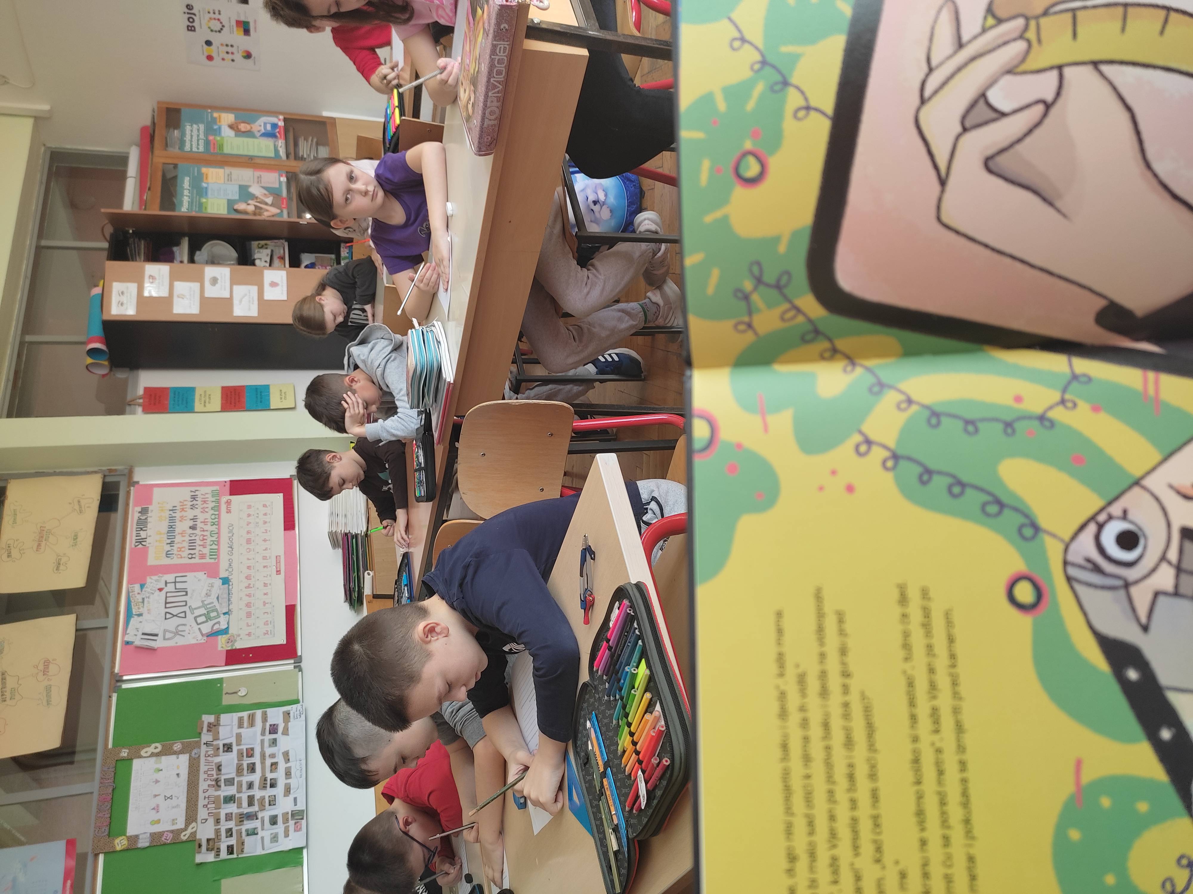 Na radionici Uspostava ravnoteže između stvarnog i virtualnog svijeta učenici 3.a, 3.b i 4. razreda imali su priliku promišljati o načinima provođenja slobodnog vremena u stvarnom svakodnevnom životu i u virtualnom svijetu posredstvom suvremene informacijske tehnologije te o sličnostima, različitostima, emocijama i vrijednostima koje prevladavaju u ta dva svijeta. U svrhu motivacije učenika za rad i sudjelovanje u aktivnosti korištena je slikovnica Želimira Periša Dan kad se ugasio ekran. Voditeljica radionica bila je Vlatka Habulin, stručna suradnica knjižničarka.