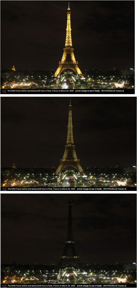 Na sat vremena će se ugasiti i osvjetljenja bezbrojnih spomenika i atrakcija diljem svijeta, primjerice na Buckinghamskoj palači, Kineskom zidu, Eiffelovom tornju, dubajskom tornju Burj Khalifi, Atomiumu, katedrali Notre Dame ili kraljevskoj palači u Bangkoku.