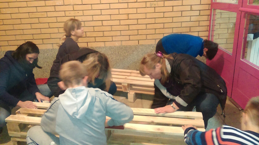 Roditelji i učenici 5.r. PŠ Dubrovčan su u četvrtak 6.11.2014. u poslijepodnevnim satima zasukali rukave i izradili klupe koje smo postavili po školskim hodnicima. Klupe su izradili od paleta koje su ,također,donacija roditelja.