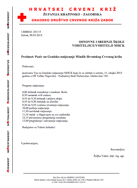 Poziv na Gradsko natjecanje Mladih Hrvatskog Crvenog križa