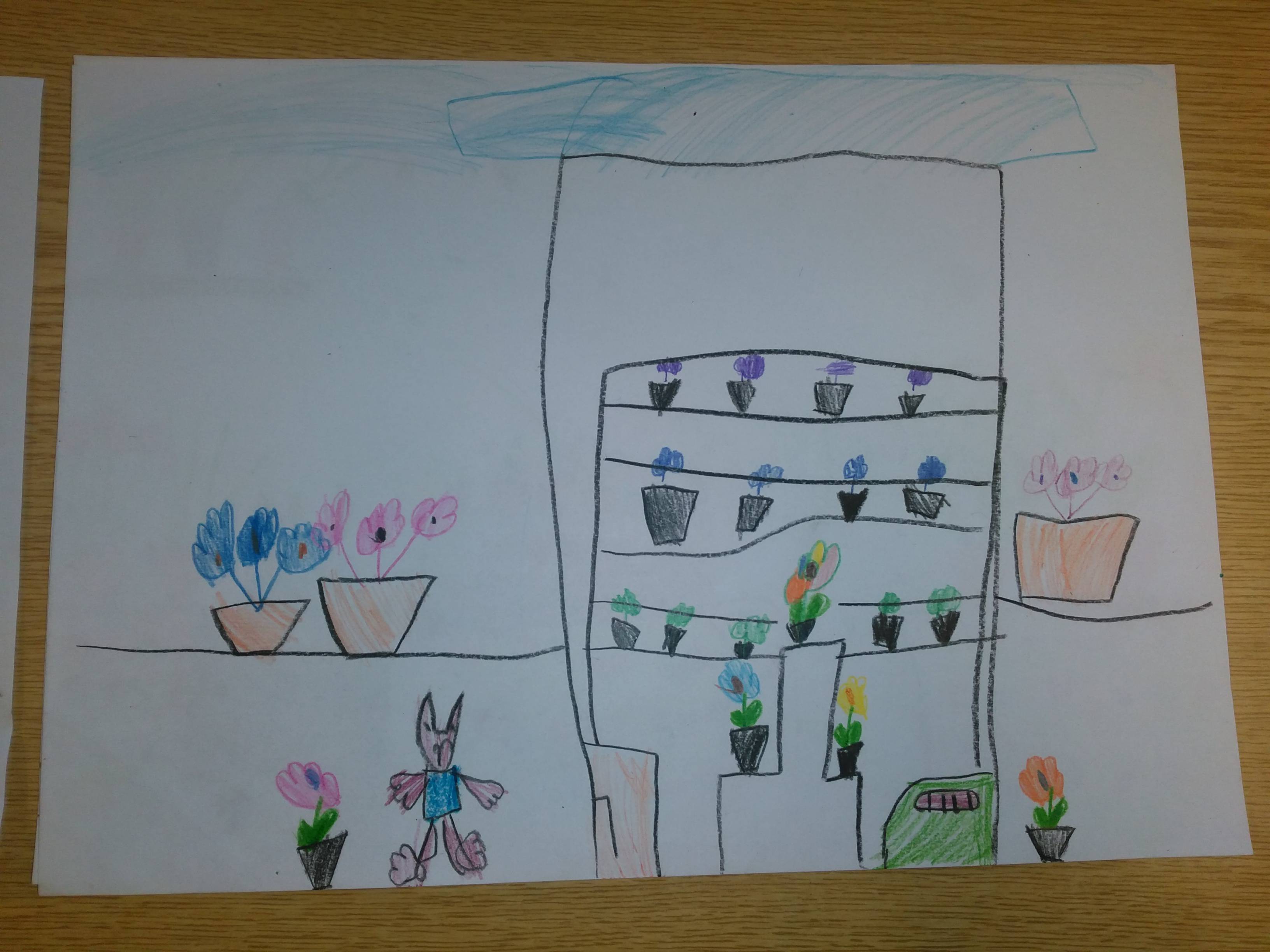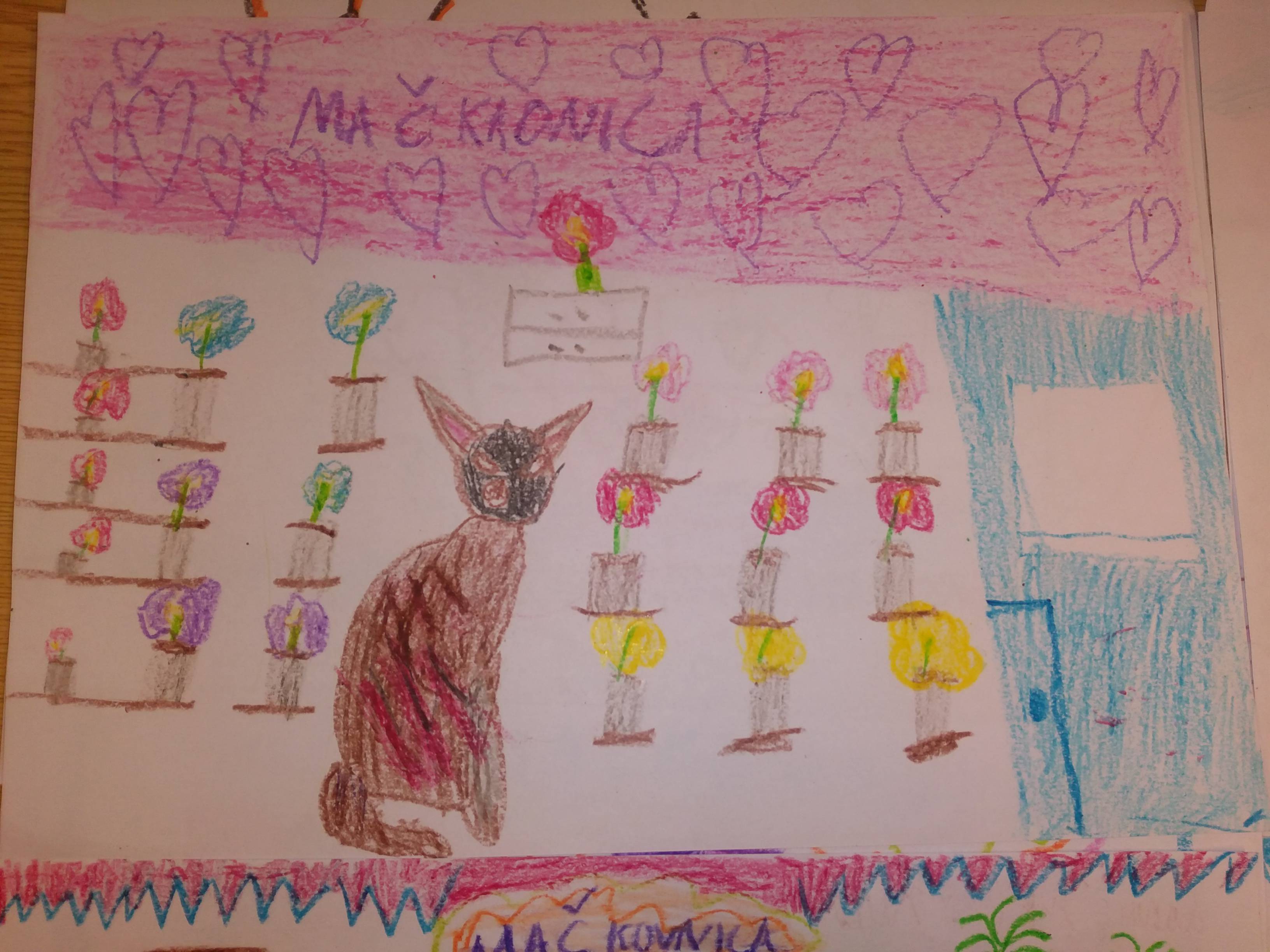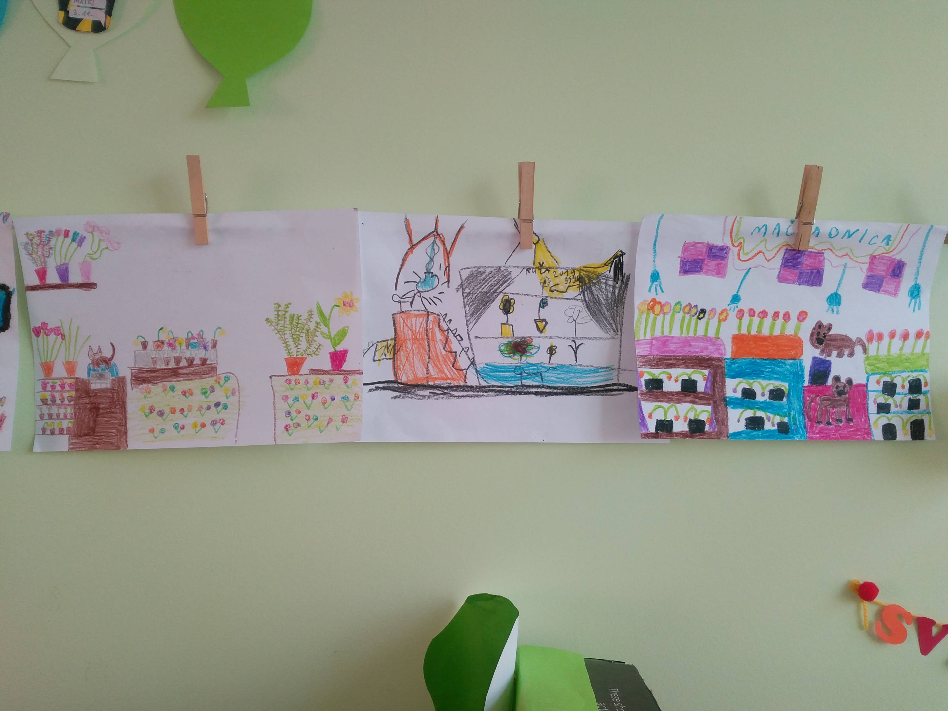 Nakon što su pročitali priču Kako su cvjećarnice postale mačkovnice iz knjige Priče iz legla buha, učenici iz 1. i 2. razreda u produženom boravku prionuli su crtanju svojih zamišljaja o tome kako bi mogle izgledati cvjećarnice u kojima su mačke cvjećarice.