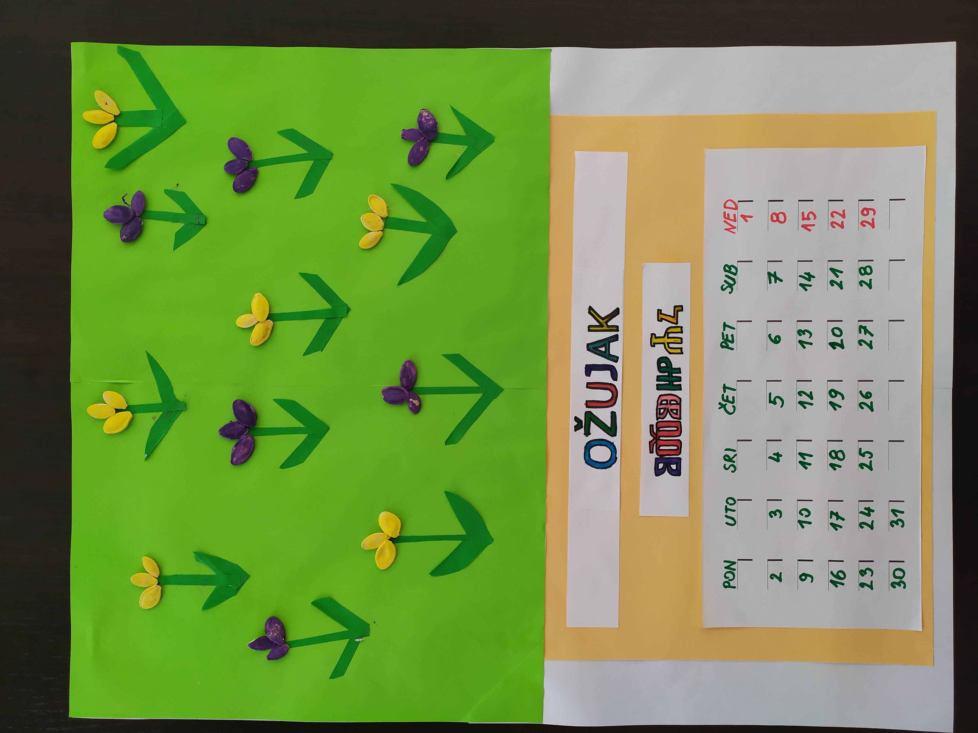 Nakon što su učenici u produženom boravku čitali knjigu Čarobni kalendar autorice Marijane Križanović, pod vodstvom svoje učiteljice Nataše Burić Mlakar prionuli su izradi kalendara: podijeljeni u grupe, dvanaest listova za dvanaest mjeseci. Na prijedlog knjižničarke Vlatke upisali su imena mjeseci i na uglatoj glagoljici, a svaki mjesec je dobio i svoju ilustraciju, napravljenu različiim likovnim tehnikama i od različitih materijala. Rezultat nam se jako sviđa! Bravo boravkaši!