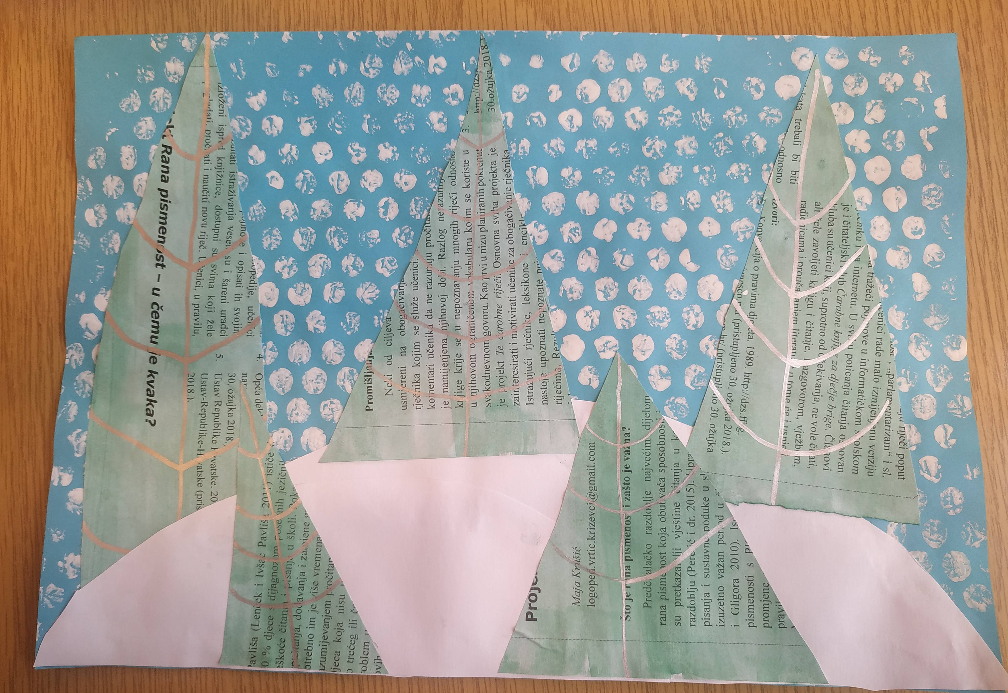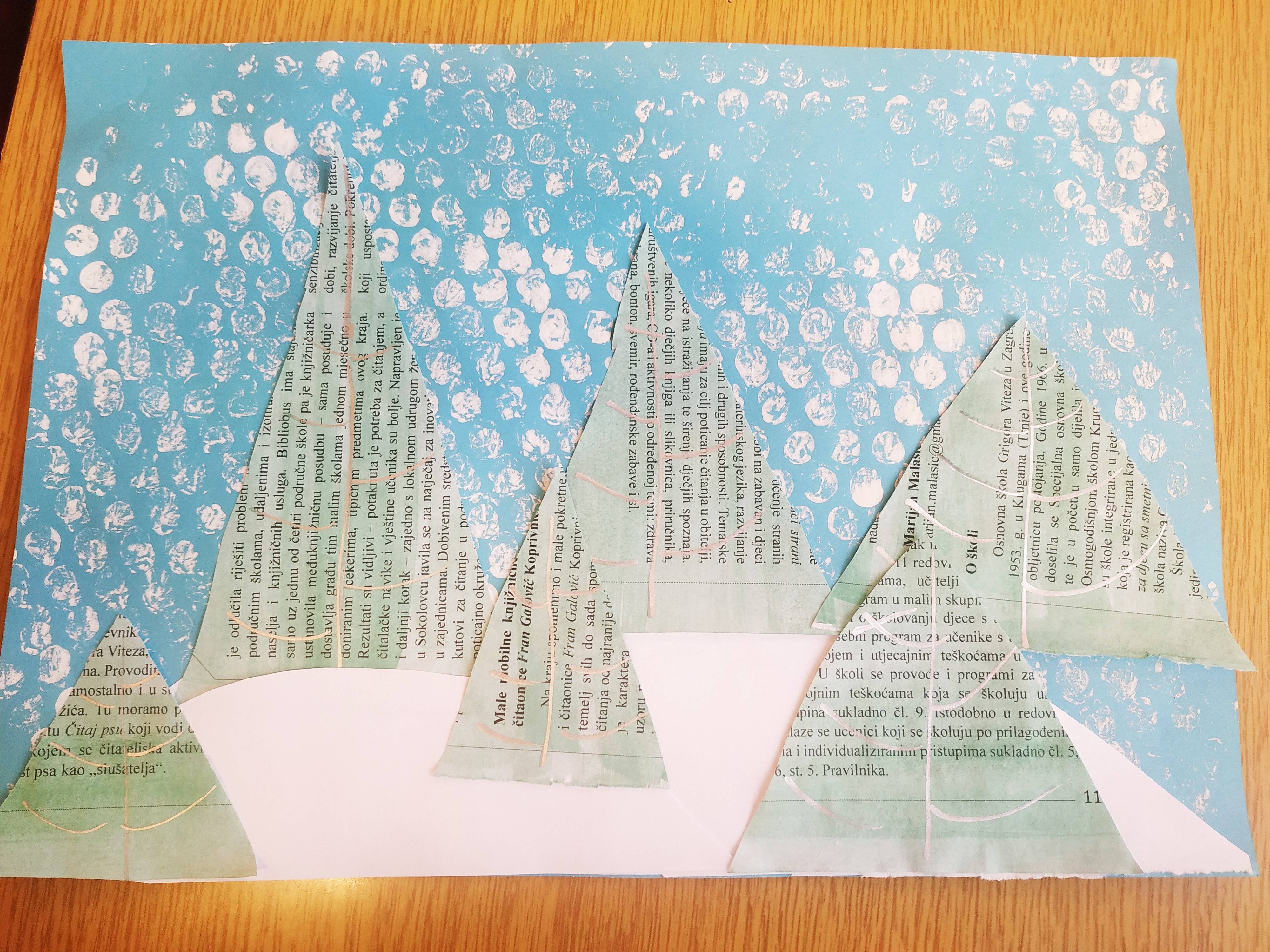 Čitanje knjige Pripovijest o mišu koji nije imao sanjke uvelo nas je u mjesec prosinac i potaknulo izradu likovnih radova, najprije na temu zimskog krajolika: