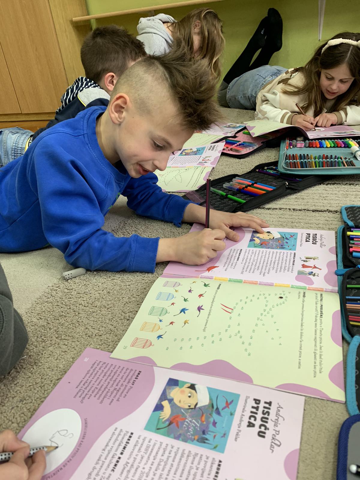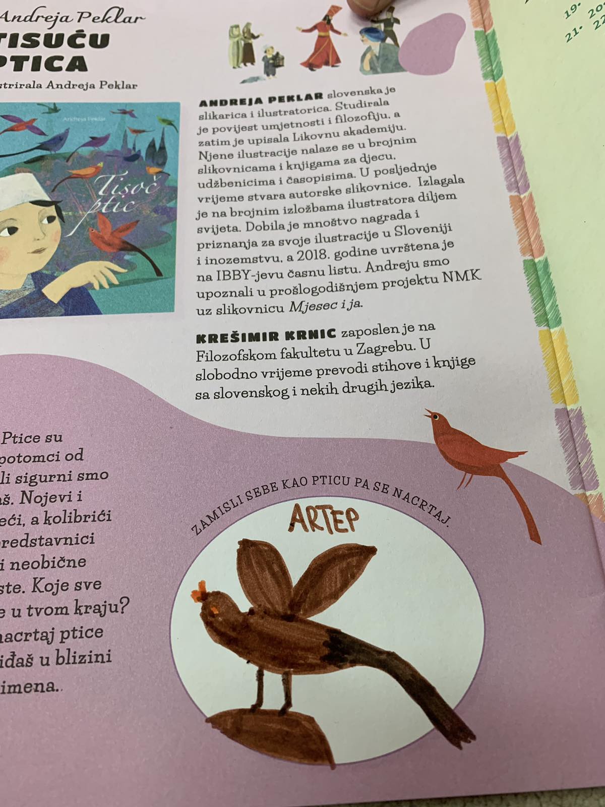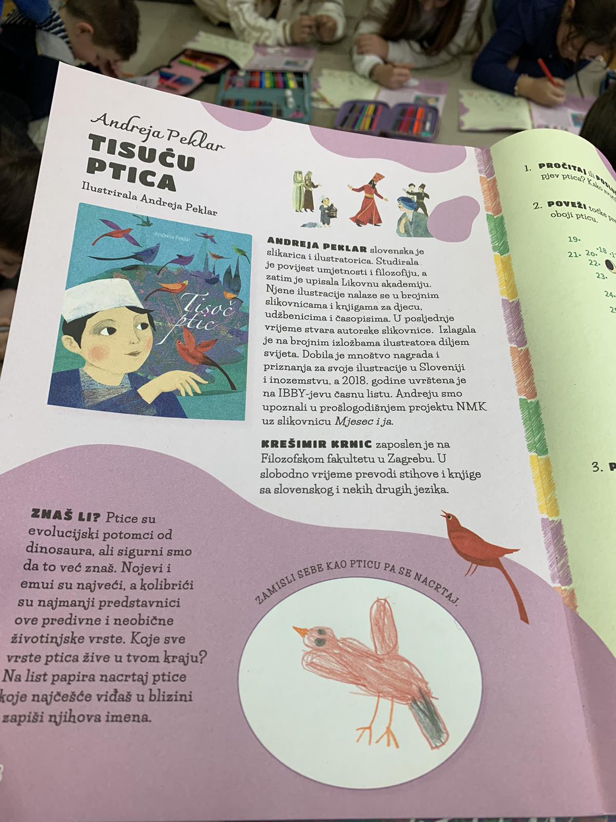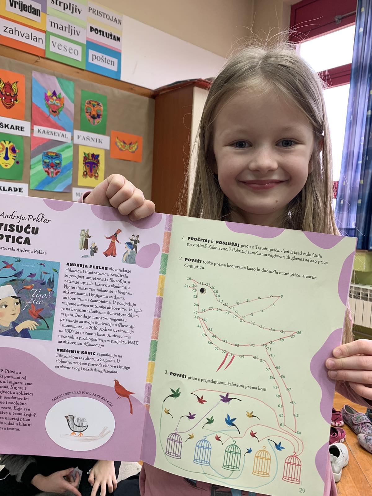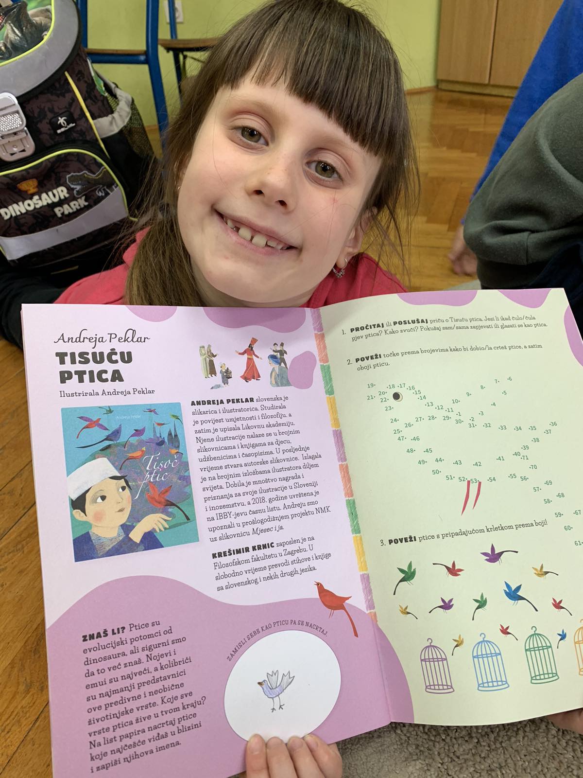 Učenici u produženom boravku u Područnoj školi Dubrovčan su pred kraj veljače čitali slikovnicu Andreje Peklar Tisuću ptica. Rješavali su zadatke u Kreativnoj knjižici; zamišljali sebe kao pticu pa nacrtali crtež, oponašali glasanje ptica, povezivali ptičice s krletkama prema boji, zapisivali osobine dječaka, bojali kralja iz priče. Istraživali su neobične ptice i gdje one žive.Uživali su čitajući priču te se lijepo zabavili i nasmijali.