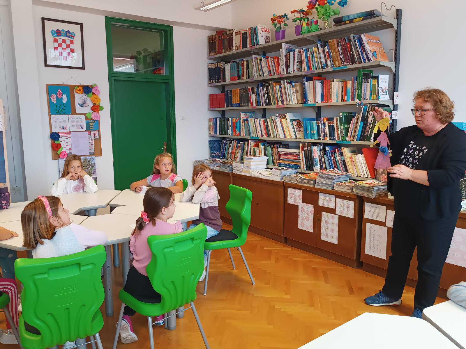 Knjižničarka Vlatka Habulin pročitala je učenicima slikovnicu Knjige drage Kuhar Drage, omiljene britanske dječje spisateljice Julije Donaldson. Nakon razgovora o slikovnici učenici su odigrali igre riječima: Gospođica od A do Ž te Čudesna riječ, a posjet su završili razgledavanjem knjižnice i posudbom knjiga i slikovnica.