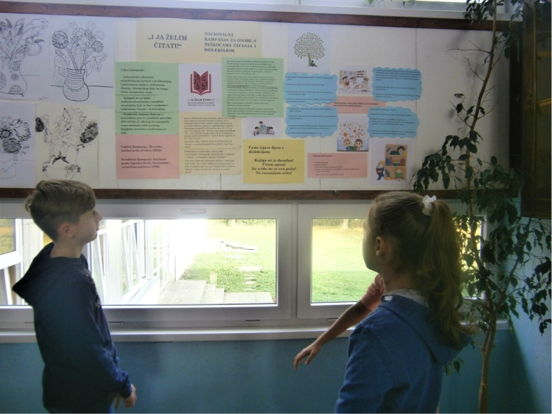 Nacionalna kampanja za osobe s poteškoćama čitanja u našoj je Školi započela postavljanjem informativnog  plakata putem kojeg su učenici, učitelji i svi zainteresirani mogli saznati osnovne podatke o Kampanji i njezinim ciljevima; osnovna znanja o disleksiji i poremećajima u čitanju te preporuke o izgledu teksta koji osobe s disleksijom lakše čitaju.