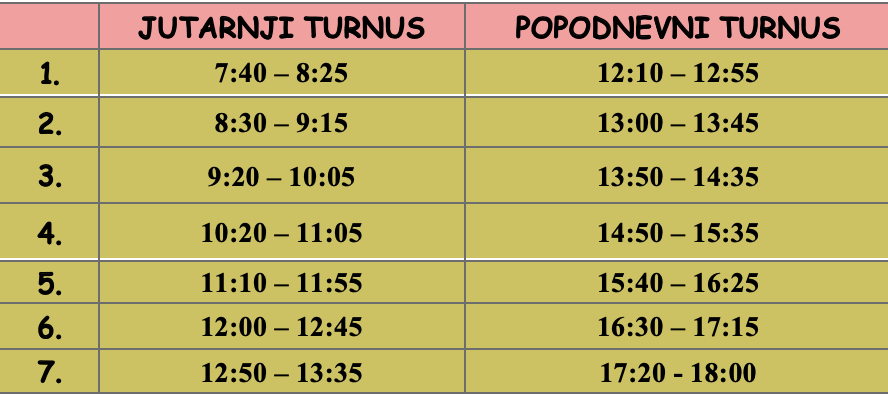 JUTARNJI TURNUS | POPODNEVNI TURNUS |
