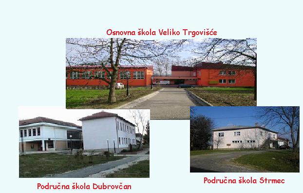 U svom sastavu imala je područnu školu Strmec i Martinišće. Godine 1974. priključuje joj se Područna škola Dubrovčan koja je do tada djelovala samostalno. Godine 1995. PŠ Martinišće pripojena je OŠ Zabok, tako da danas OŠ Veliko Trgovišće ima dvije područne škole PŠ Strmec i PŠ Dubrovčan.
