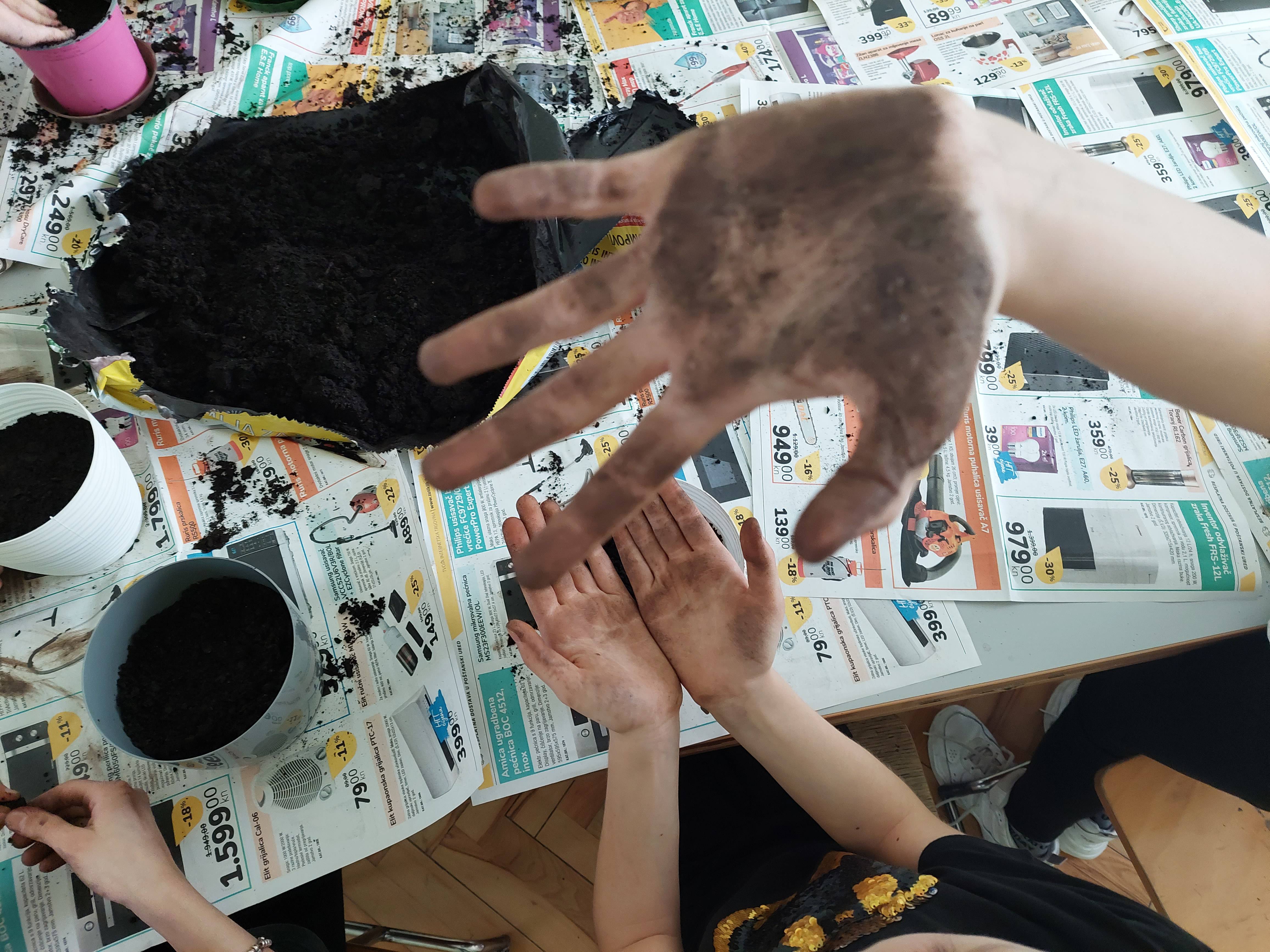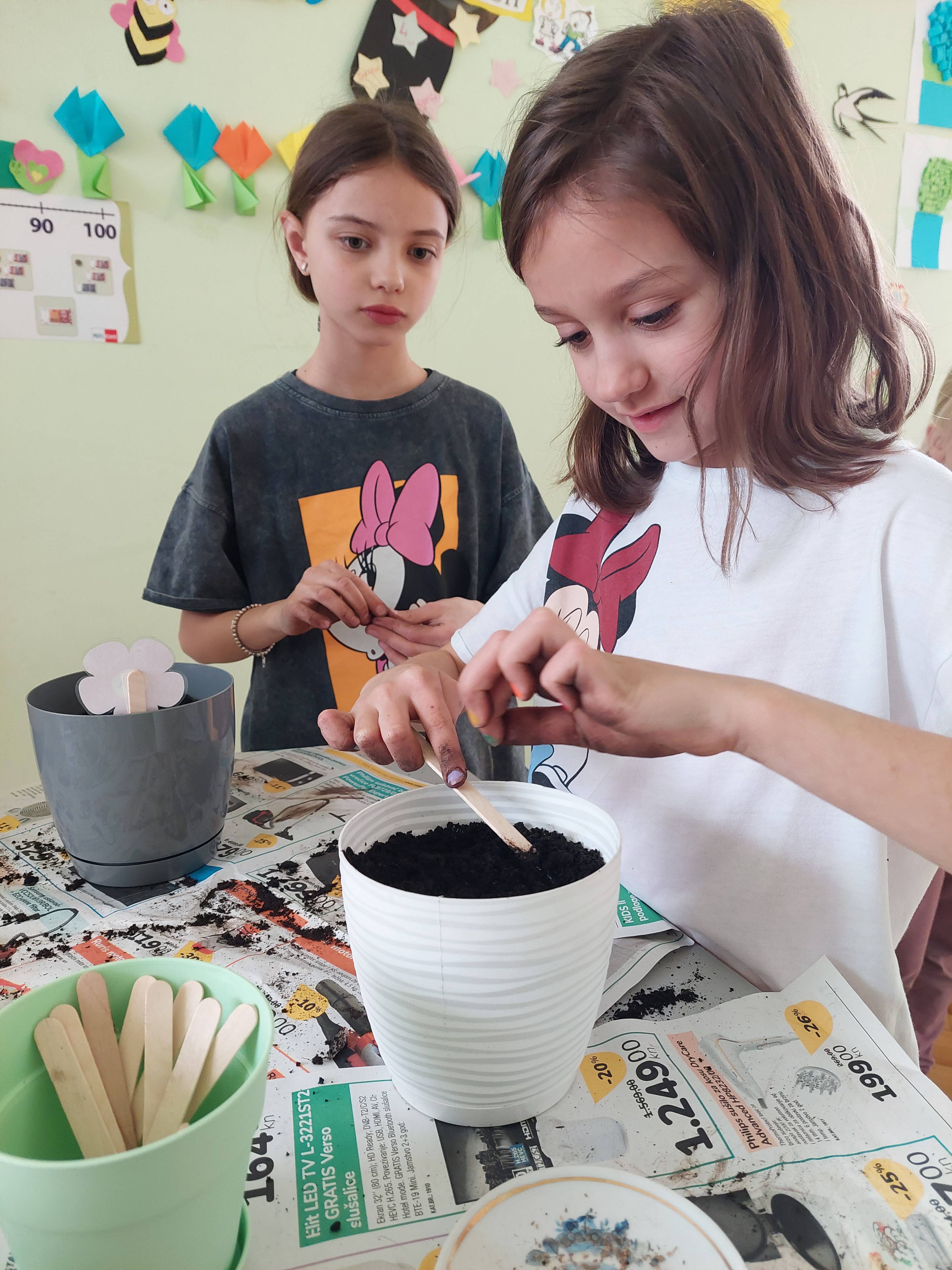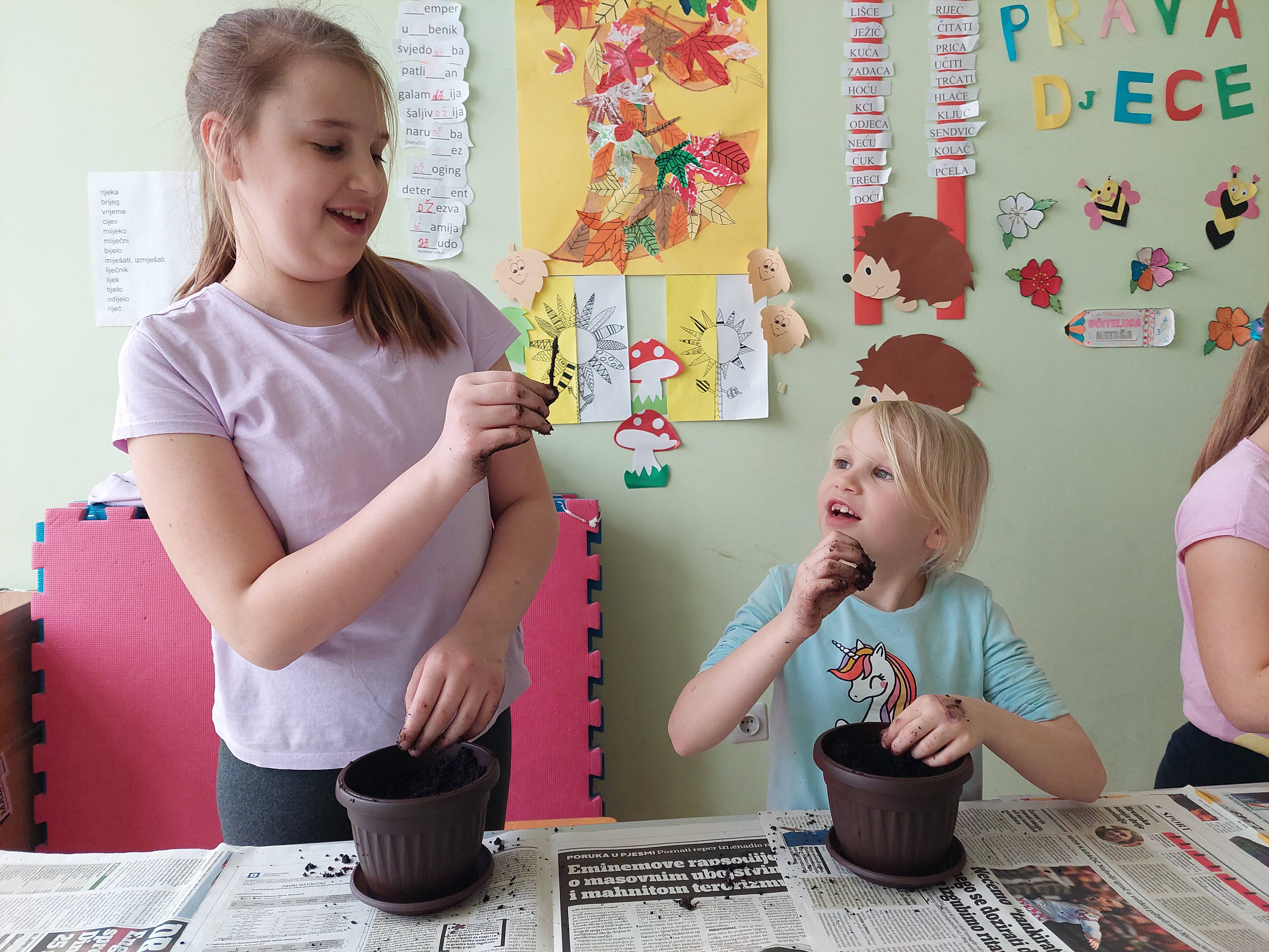 Dolazak proljeća najavljuje nam prozor učionice produženog boravka kojega krase cvjetići s imenima učenika. Učenici su zajedno s učiteljicom malo „uprljali“ ruke i posijali cvijeće. U idućim tjednima promatrat ćemo kako naše biljke klijaju i polako rastu; pružit ćemo im puno pažnje i ljubavi kako bi na kraju mogli uživati u plodovima svoga truda – lijepim i šarenim cvjetovima.