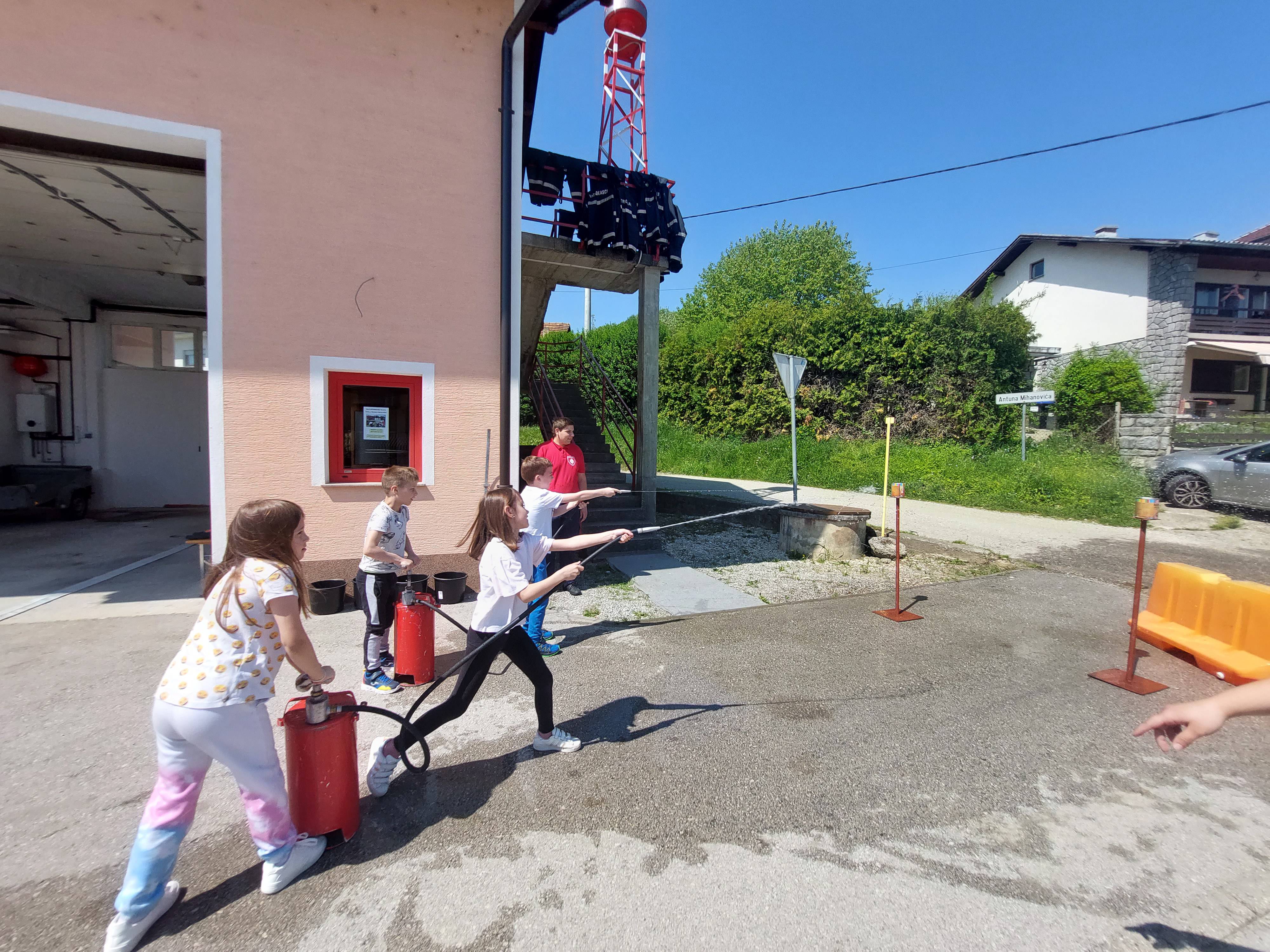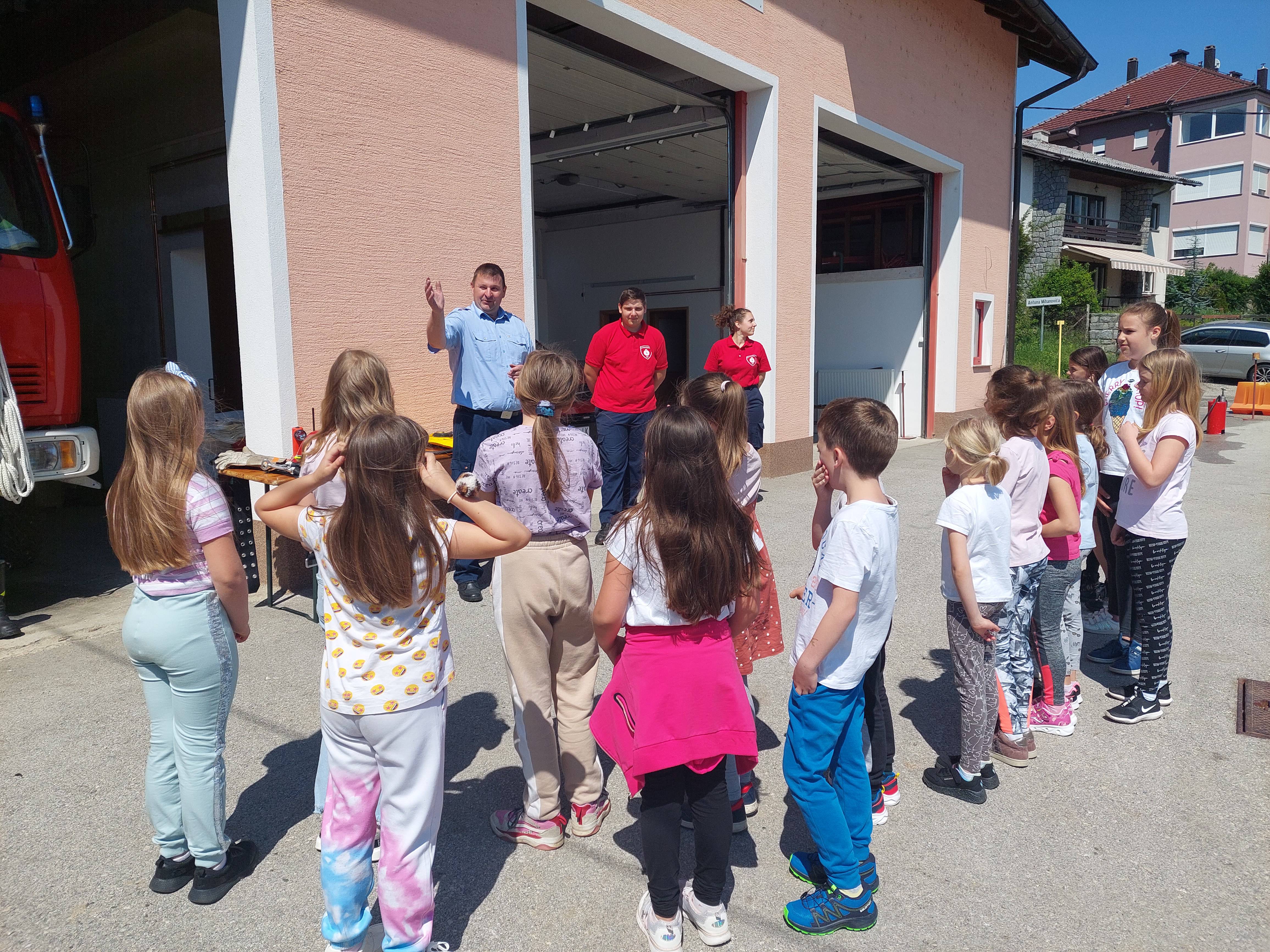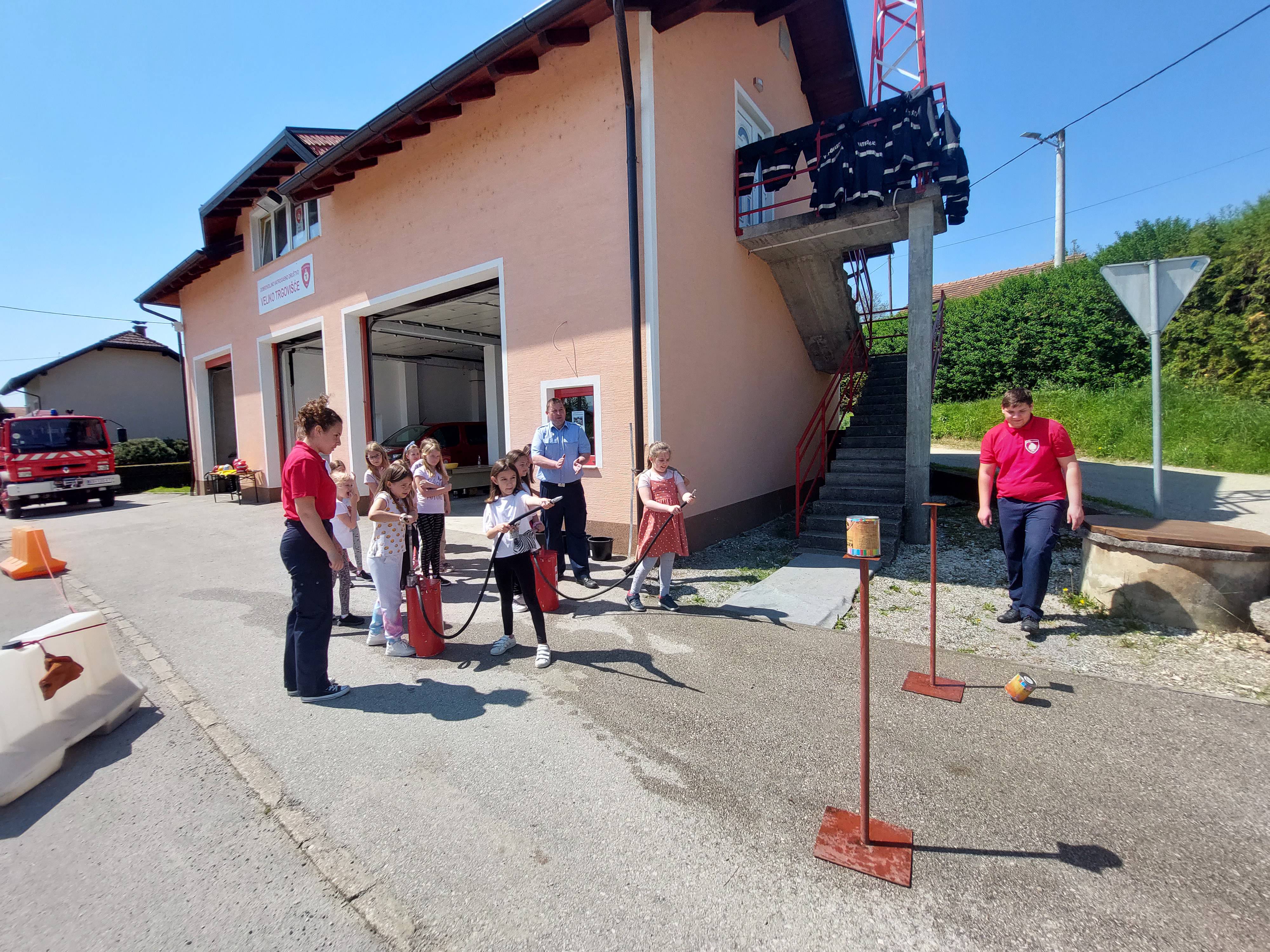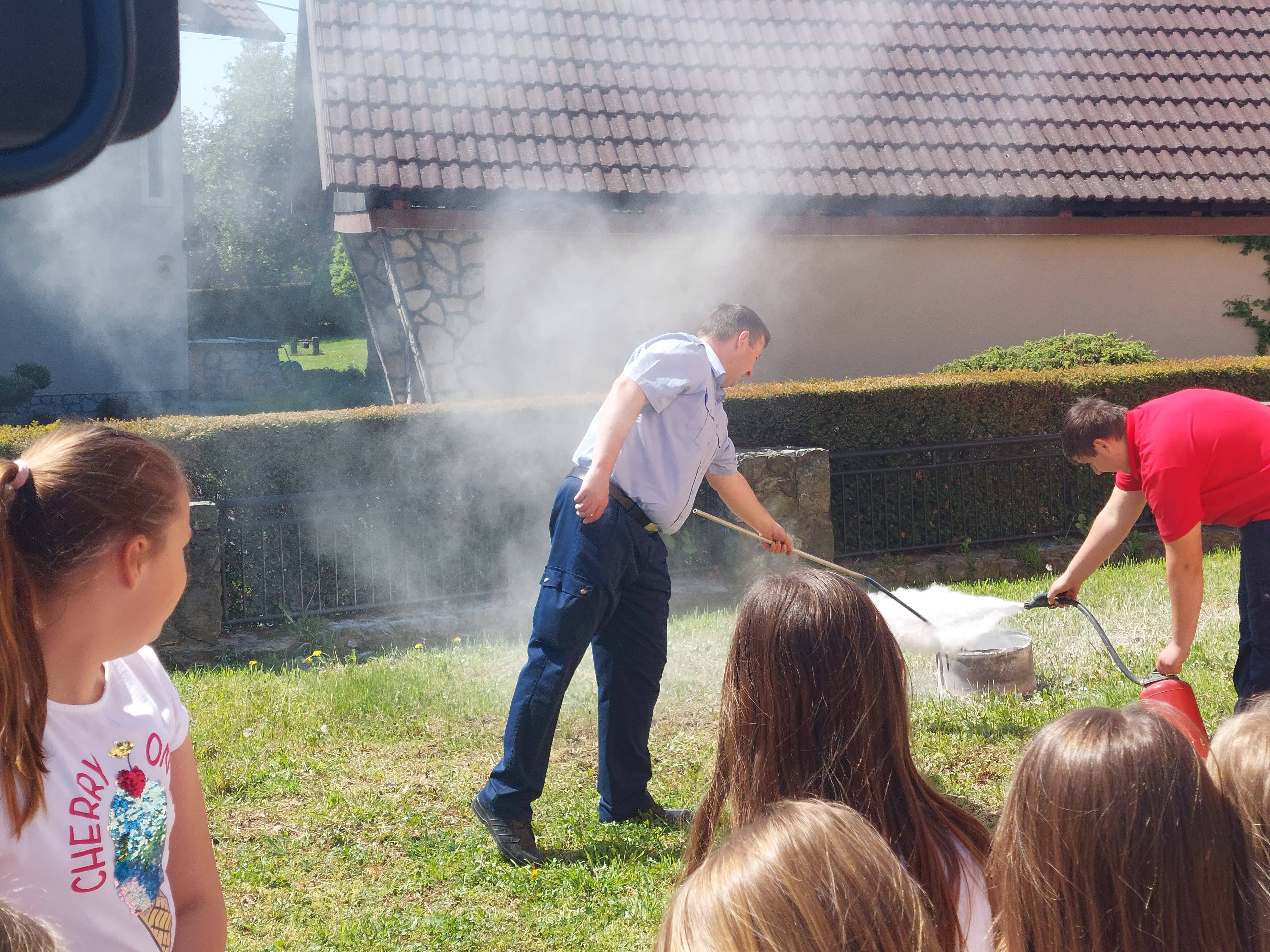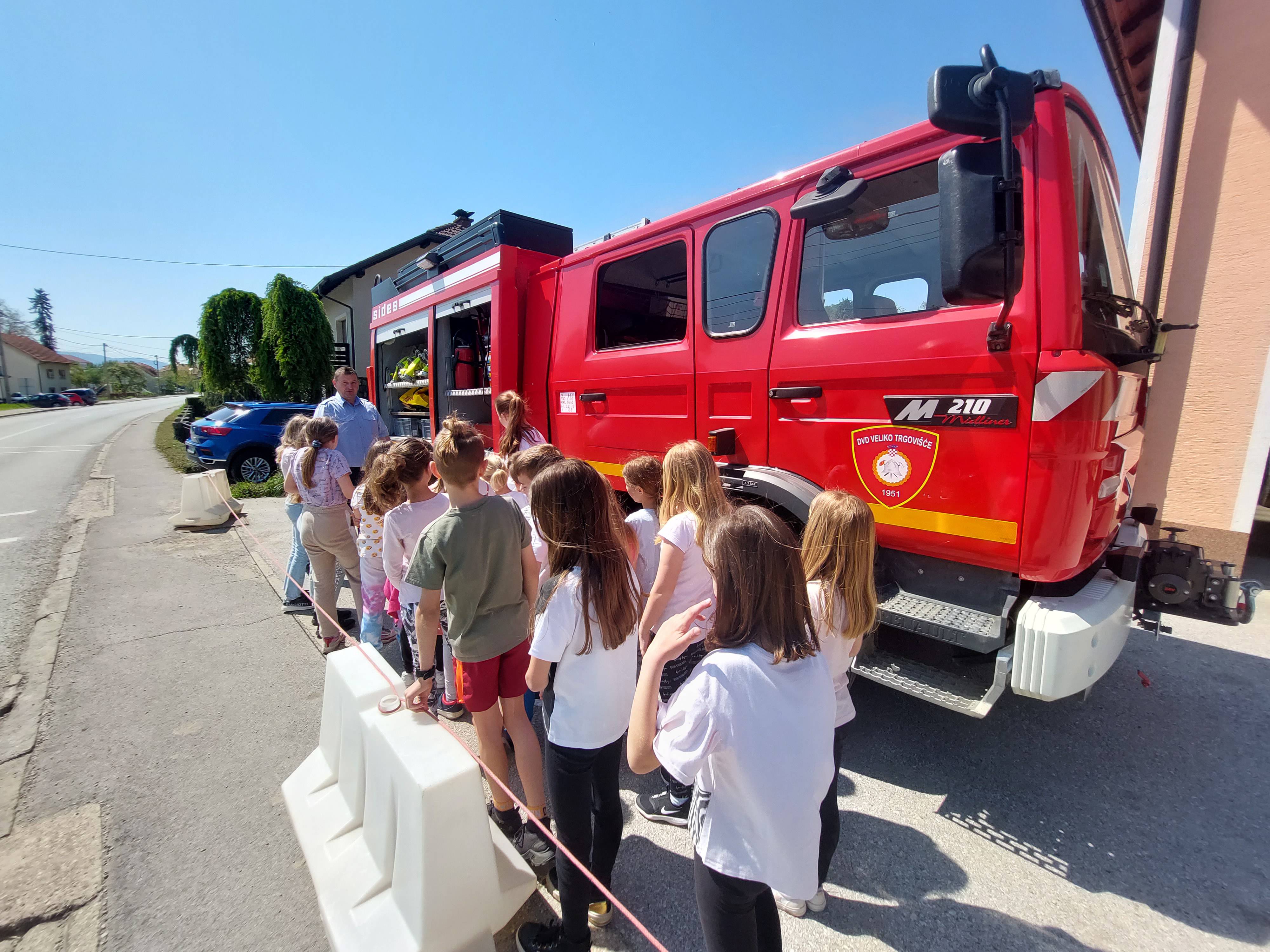 Na Dan svetog Florijana, 4. svibnja slavi se Dan vatrogasaca. Budući da je taj dan DVD Veliko Trgovišće imalo otvorena vrata za sve posjetitelje, učenici produženog boravka su se zajedno s učiteljicom uputili u posjet vatrogascima. Srdačni i dobro raspoloženi dobrovoljni vatrogasci za početak su nas podsjetili kako trebamo postupiti ukoliko dođe do požara, poplave…, upoznali su nas s opremom vatrogasaca te s vatrogasnim vozilom i opremom u njemu; osim izvana učenici su imali priliku vatrogasno vozilo upoznati i iznutra što ih je posebno oduševilo. U blizini vatrogasne postaje tada je izbio mali požar, no vatrogasci su to brzo ugasili vatrogasnim aparatom pa nije bilo velike štete. Ma samo se šalimo, to je bila demonstracija gašenja požara. Za kraj su se svi učenici okušali u „gašenju požara“ tj. ciljanju i gađanju limenki vodom. Oduševljenja, smijeha i radosti nije nedostajalo pa su neki od učenika odlučili da će se priključiti malim vatrogascima te pohađati njihove vježbe. S DVD-a nismo otišli praznih ruku; svaki učenik dobio je vatrogasnu bojanku, raspored sati i letak pomoću kojeg će zajedno s roditeljima i učiteljicom saznati kako spriječiti požar te kako postupiti ukoliko do požara ipak dođe.