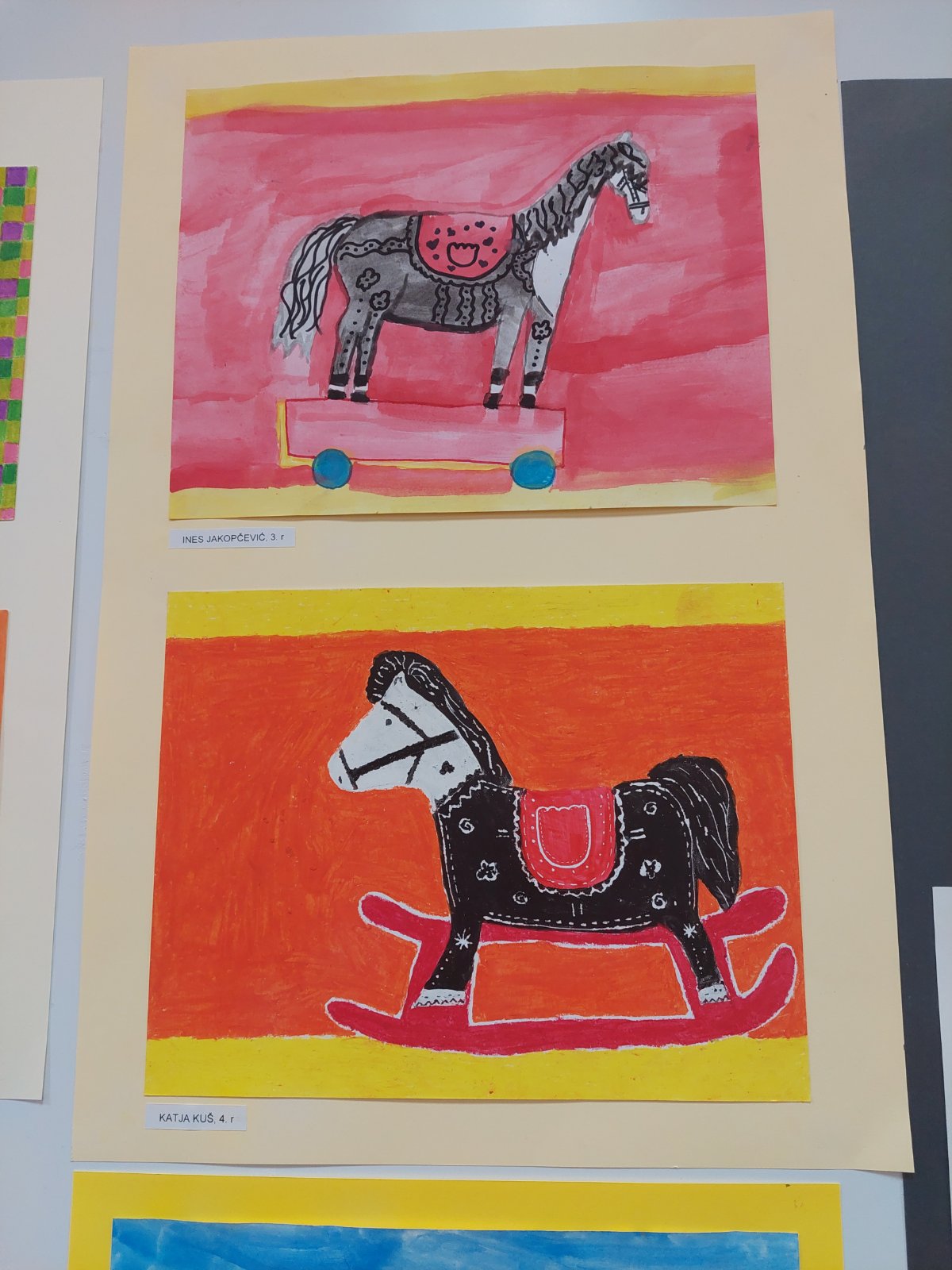 Prošle školske godine „boravkaši“ su odlučili sudjelovati na natječaju za Izložbu dječjih likovnih radova u Krapini. Teme su bile: zagorski pejzaž, licitari i tradicijske dječje igračke. Odlučili smo se posvetiti licitarima i tradicijskim igračkama. Proučavajući ih upoznali smo dio kajkavske baštine i uživali u tome. Nakon istraživanja prepustili smo se mašti i krenuli u stvaranje likovnih radova od kojih je većina nastala u tehnici grataž koja je učenicima bila nova i zanimljiva pa su odlučili svoj rad napraviti baš u toj tehnici. Uživali smo i dali sve od