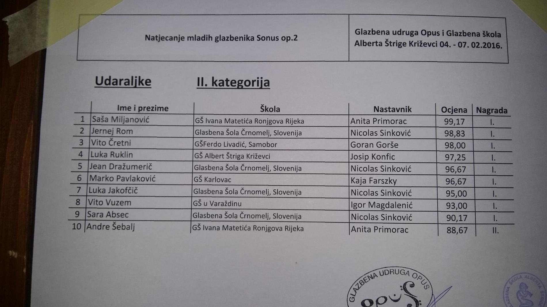 Album: Uspjeh našeg učenika na glazbenom natjecanju (veljača 2016.)