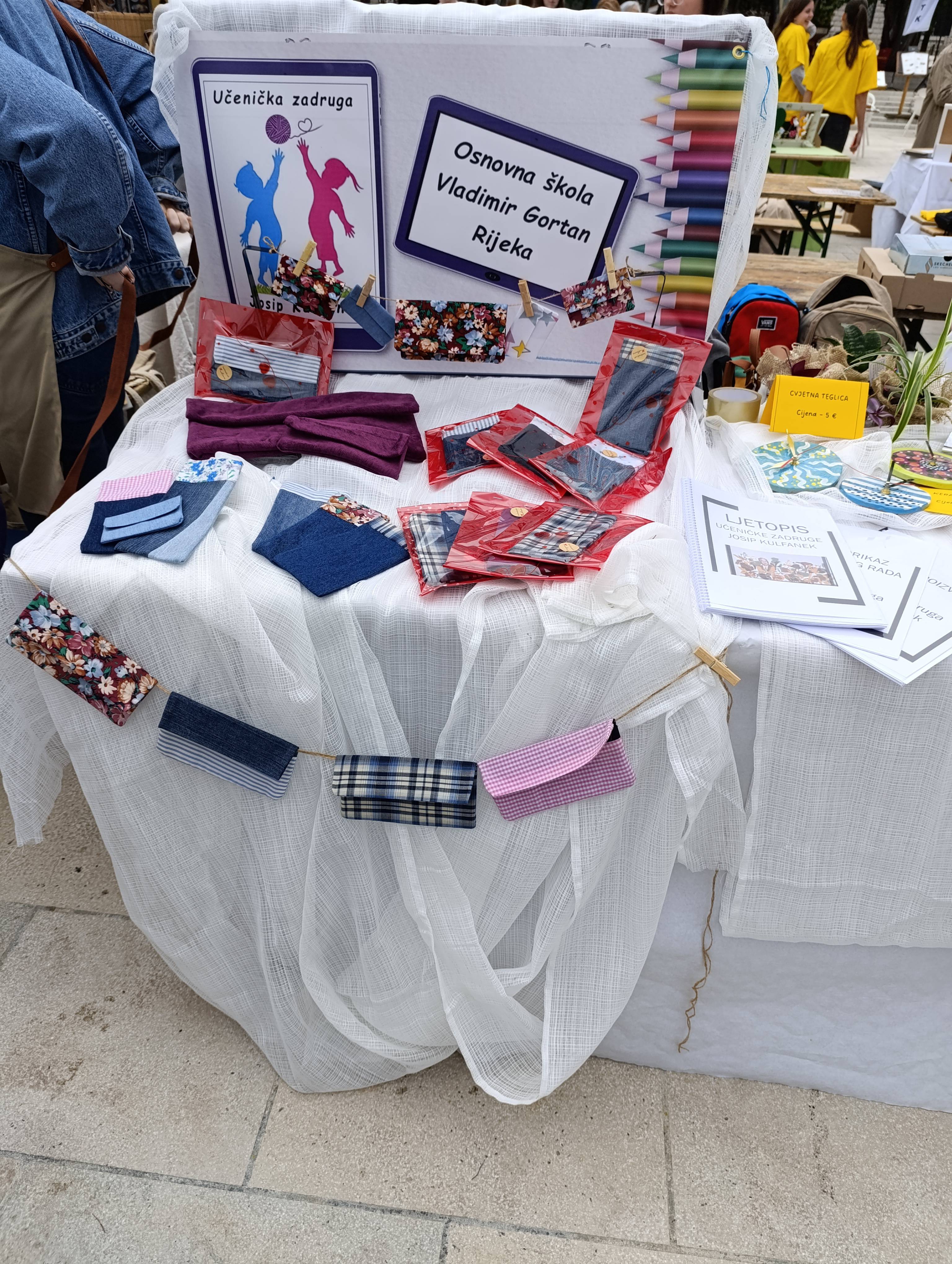 Proizvod koji smo ove godine prezentirali na smotri bile su torbice za mobitel od trapera i drugih recikliranih tekstilnih materijala, koje su pohvaljene kao dobra i kreativna ideja. Prezentaciju su odradile naše vrijedne učenice osmog razreda Ema Petrović i Sonja Buga Papeš koje su i proteklih godina sudjelovale na sajmovima zadruga. Društvo su im pravile i od njih učile učenice šestog razreda Gabriela Martić i Zoe Radić, a u pratnji je kao podrška i stručna pomoć bila učiteljica Iva Pataj.