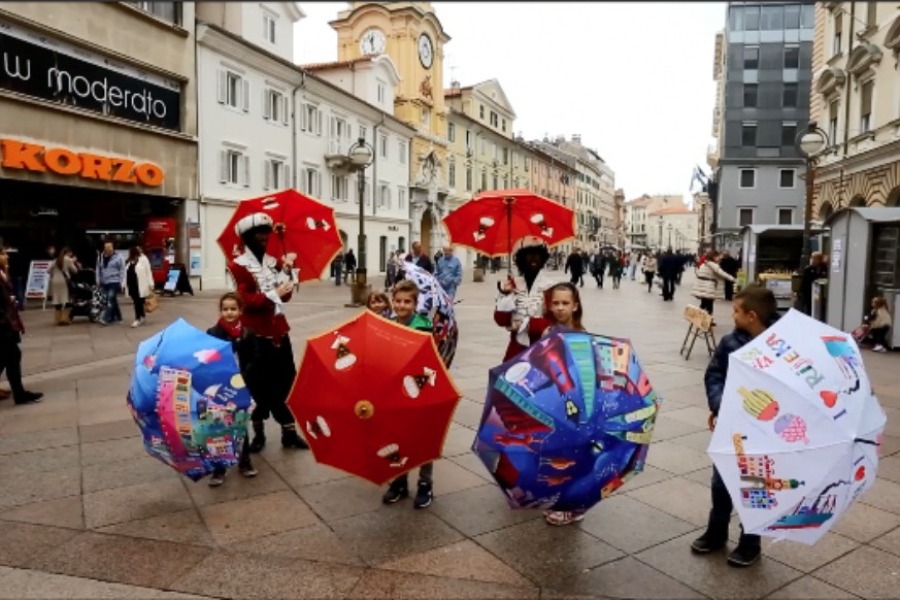 Poznati riječki umjetnici, ali i nove mlade umjetničke snage zamijenili su klasično slikarsko platno s kišobranima te tako stvorili prepoznatljiv riječki, ali i hrvatski suvenir - kišobran. U prezentaciji su sudjelovali i učenici 2. a i 2. b razreda, koji su posližili kao manekeni, noseći otvorene kišobrane riječkim Korzom.