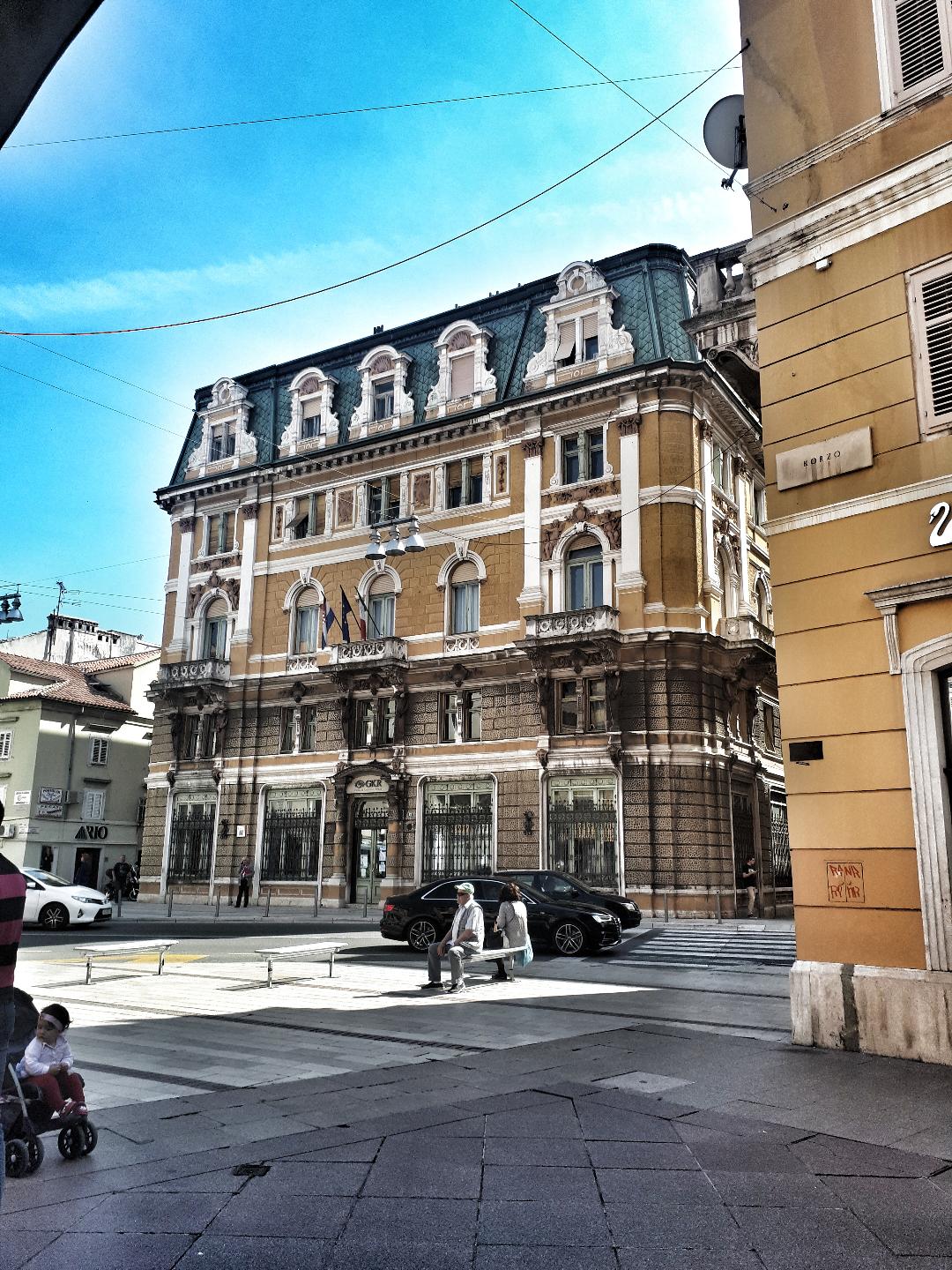 Palača Modello nalazi se nedaleko od zgrade HNK, na mjestu srušenog Adamićeva kazališta, po projektu bečkog atelijera Fellner i Helmer, kao palača Riječke banke i štedionice. Građevina je oblikovana u kombinaciji bogatih ukrasnih elemenata preuzetih iz visoke renesanse i kasnog baroka. Dekorativnu plastiku izveo je kipar Ignazio Donegani. Atraktivna je svečana dvorana u kojoj je auditorij Talijanskog kluba kulture (Circolo italiano di cultura), ukrašena raskošnim štukaturama. Fellner i Helmer prenijeli su u Rijeku arhitekturu bečkog Ringa, pa je ta palača ravna arhitekturi metropole. U prizemlju zgrade danas djeluje Središnji odjel Gradske knjižnice Rijeka kojeg smo također posjetili.