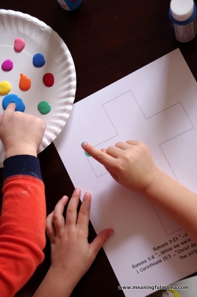 2. a) Na praznoj strani u bilježnici iz vjeronauka nacrtajte veliki križ i neka Vaše dijete, a možete mu se i Vi pridružiti oboji, tj. ispuni taj križ temperama s otiscima svojih prstića. – ovo može biti zajednički obiteljski projekt ako imate kod kuće tempere. Ukoliko odaberete ovaj projekt možete mi posliakti završni rad i poslati na Viber privatnu poruku jer mail od Carneta može zezati kao prošli tjedan. (Prilog 1 – prikaz kako bi to trebalo izgledati.)