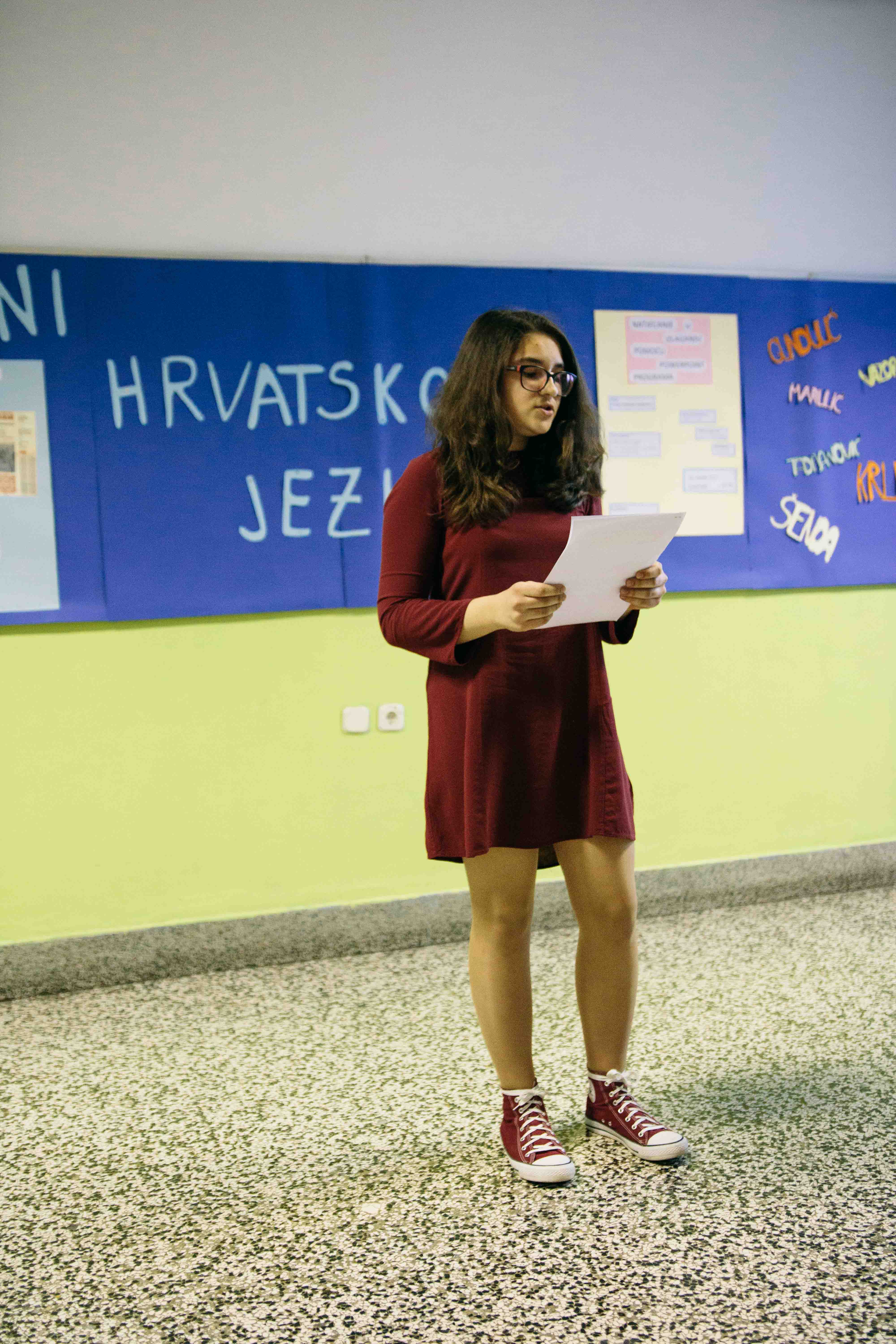 Tijekom programa, koji je vodila učenica 8.b Ana Delić, ponovno smo poslušali najbolje kazivatelje poezije te nekoliko riječi u spomen pedesete obljetnice objave Deklaracije o nazivu i položaju hrvatskog književnog jezika.