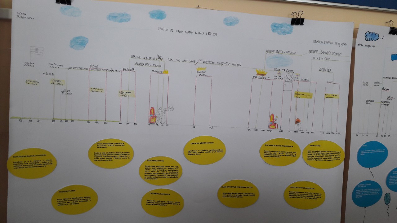 Pod stručnim vodstvom Marijana Bogatića, višeg muzejskog pedagoga, učenici su izradili lente vremena. Kroz radionicu upoznali su se s dolaskom Hrvata, hrvatskim kneževima, hrvatskim kraljevima, te ulaskom Hrvata u zajednicu s Mađarima.