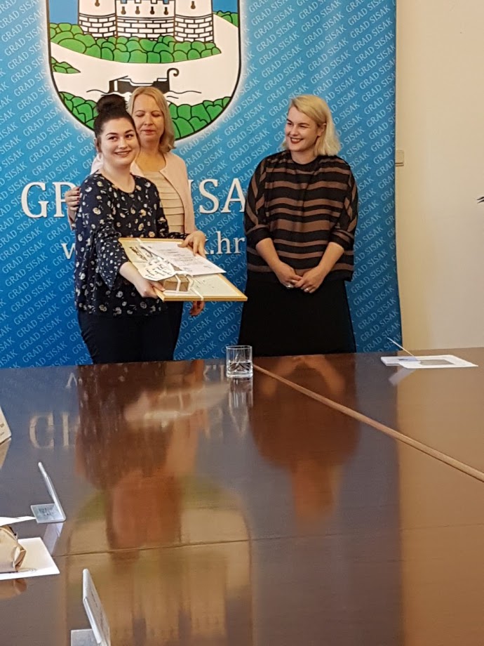 Da se trud i rad itekako isplati znaju pobjednici likovnog natječaja „Sisak – grad umjetnosti i sporta“ – Karla Panižić, 8.b ( 1. mjesto) i Mia Štimac, 8.a (3. mjesto) u kategoriji od 5. do 8. razreda te Teo Pastuhović (1. mjesto) u kategoriji od 1. do 4. razreda. Veselju nije bilo kraja kad im je gradonačelnica Kristina Ikić Baniček uručila vrijedne nagrade. Karla je dobila smartwatch i grafiku Slave Striegla, Mia također grafiku i Teo smartphone i likovni pribor.