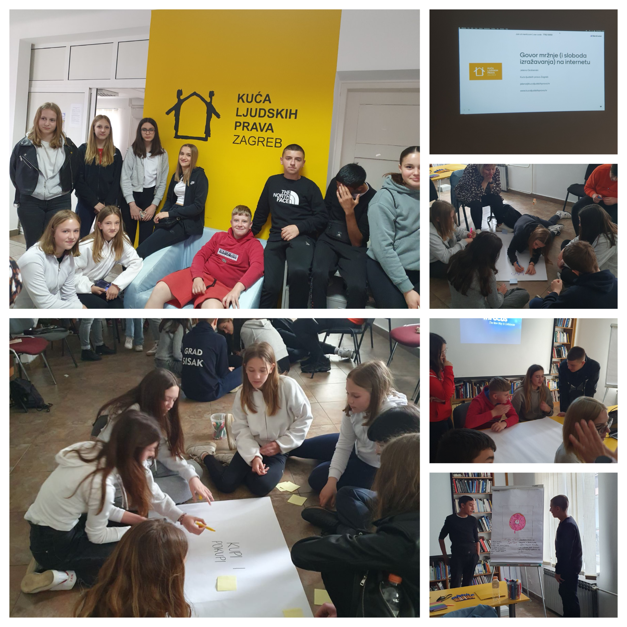 Učenici 5., 6., 7. i 8. razreda polaznici Građanskog odgoja i obrazovanja i učenici predstavnici Dječjeg gradskog vijeća učenika grada Siska dana 16. travnja 2024. godine posjetili su Kuću ljudskih prava u Zagrebu.