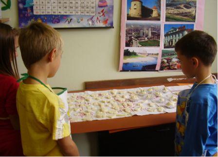 I mi mijesimo i od tijesta pravimo kolačiće i oblikujemo naravno jabuke pa mi smo 2.a