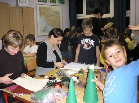 Povodom nadolazećih blagdana naša učiteljica i mi pozvali smo roditelje da nam pomognu izraditi božićne ukrase. Spretnim rukama, s puno kreativnosti, druženja i ljubavi oblikovali smo bogate vjenčiće, šarene buketiće, zelene boriće, bojali kuglice, izrađivali anđelčiće i još puno različitih božićnih ukrasa.