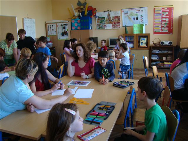 Nakon što je učiteljica pročitala priču, učenici su podijeljeni u skupine sa svojim roditeljima rješavali kreativne zadatke. Na kraju sata učenici- predstavnici skupina, izložili su gotove uratke.