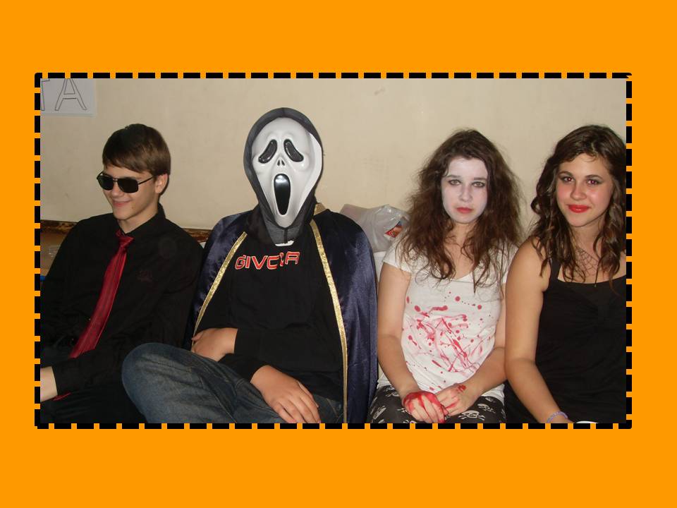 They appeared dressed up in costumes of witches, vampires, zombies, ghosts.... In the misterious atmosphere of candle lights and in the classroom decorated by numerous pumpkins, black cats, bats and spiders they first heard some facts about Halloween, an ancient Celtic festival that is nowdays celebrated all over the world especially in the UK and the USA, then some students read spooky stories and finally there was a projection of "Slender Suits", a documentary about horrifying Slender man.
